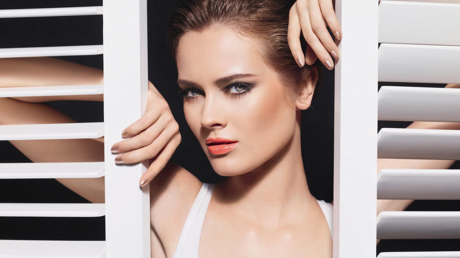 Похожие обои на Красотка с маникюром смотрит между ставень: