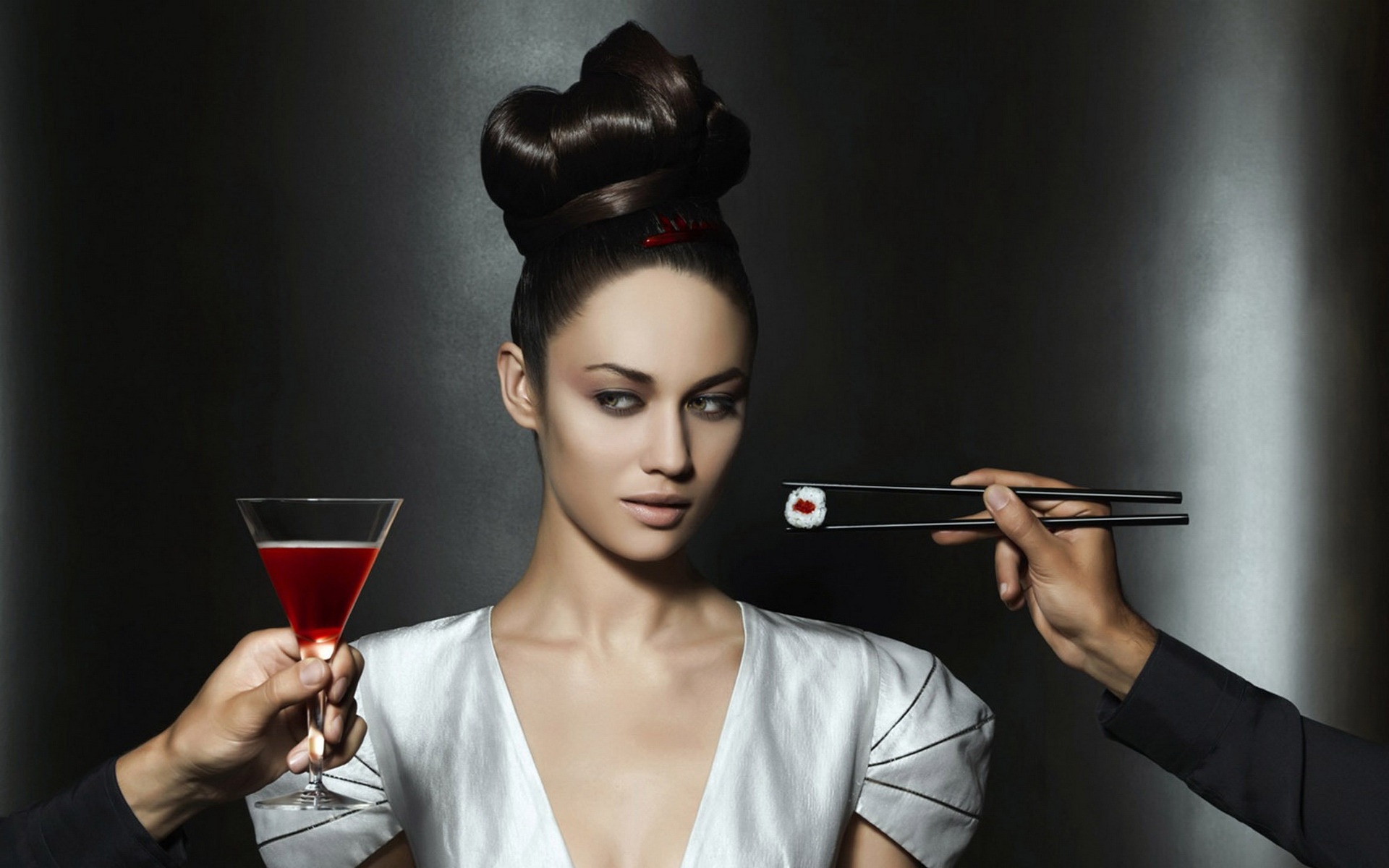 Скачать обои для рабочего стола Красотка за ужином и фото