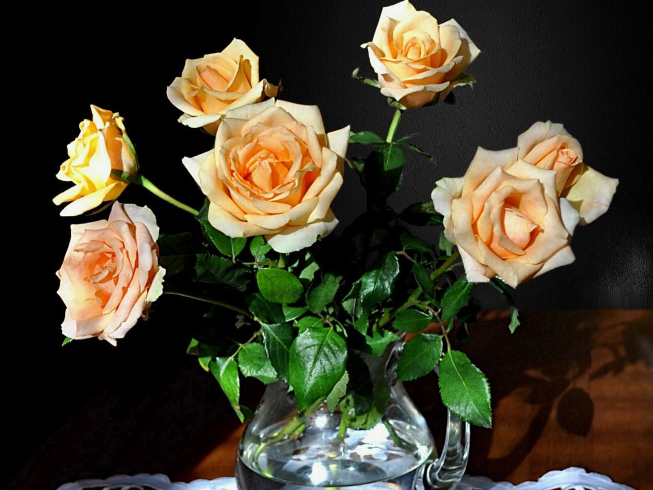 Скачать обои для рабочего стола Кремовые розы в кувшине и фото