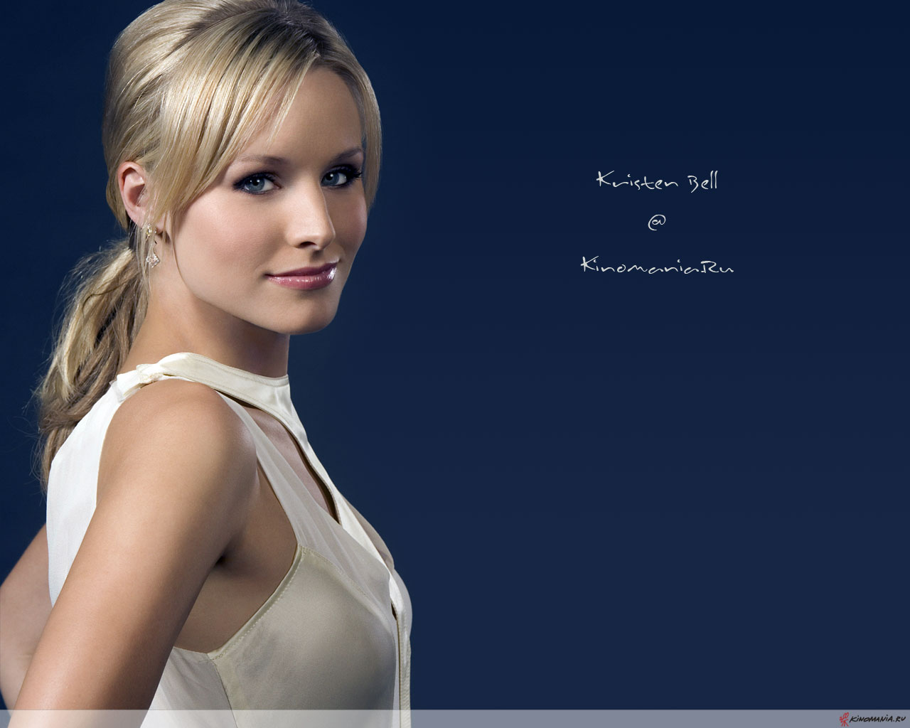 Скачать обои для рабочего стола Kristen Bell на синем фоне и фото