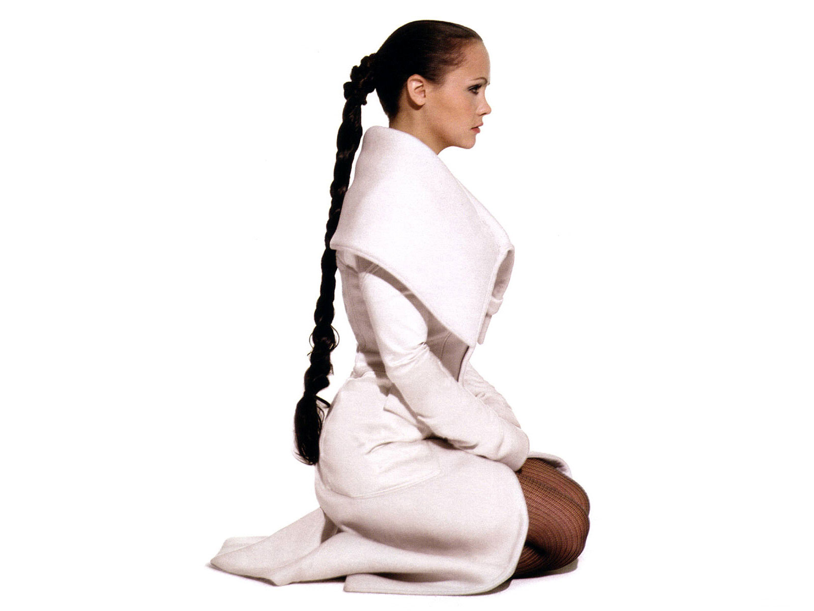 Скачать обои для рабочего стола Кристина Ричи в белом пальто и фото