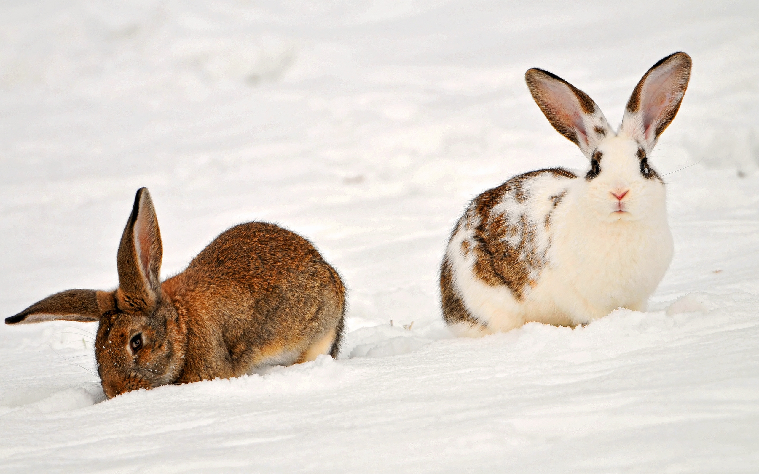 Скачать обои для рабочего стола Кролики на снегу и фото