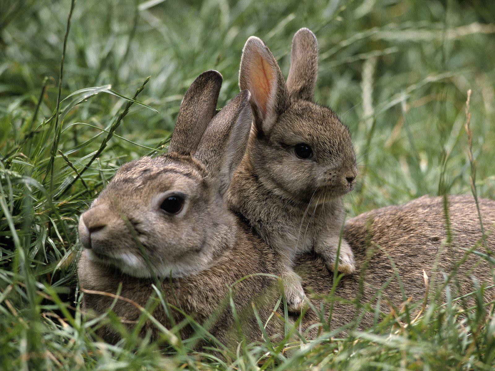 Скачать обои для рабочего стола Кролики отдыхают в травке зеленой и фото