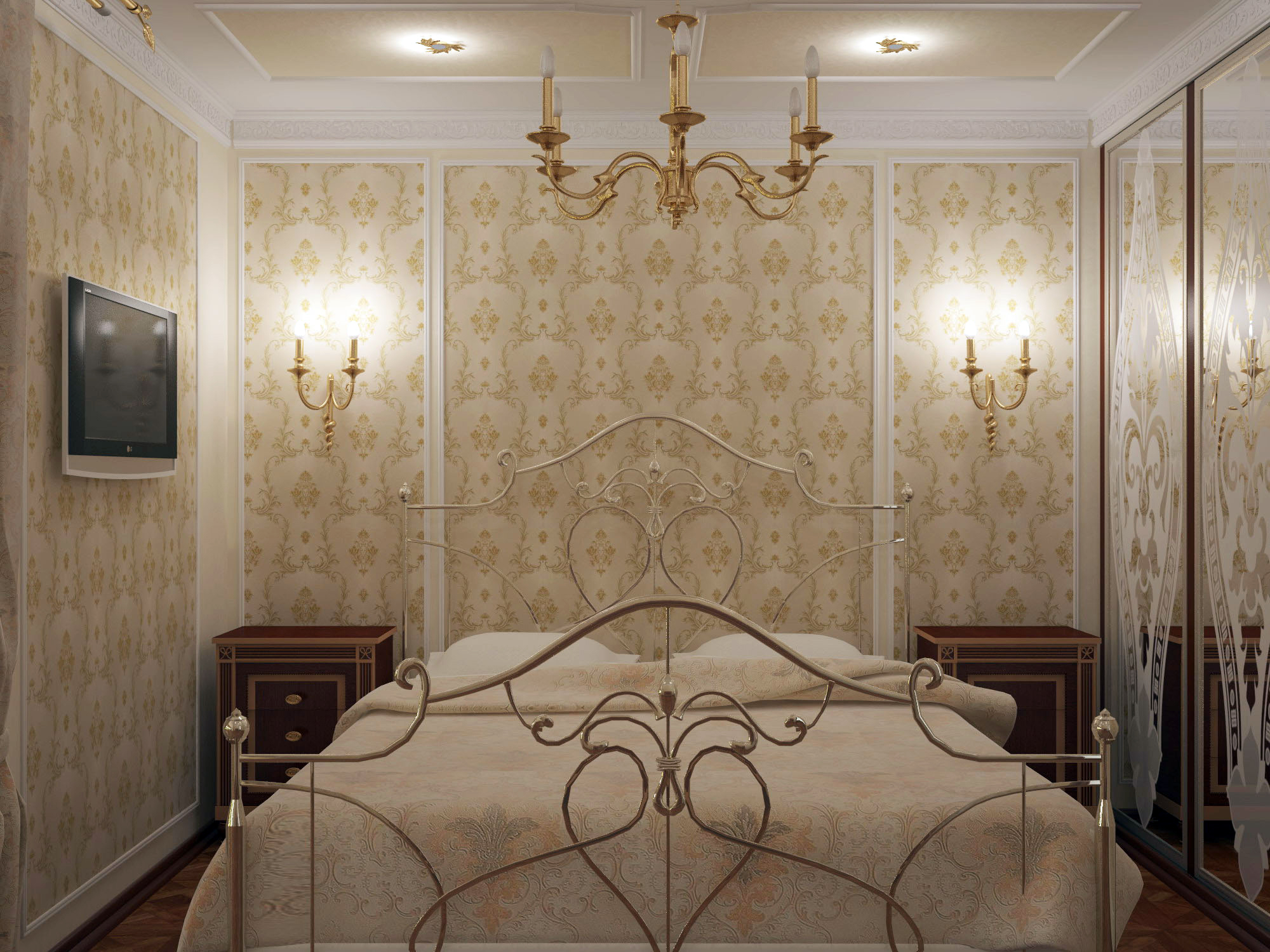 Скачать обои для рабочего стола Кровать и телевизор в спальне и фото