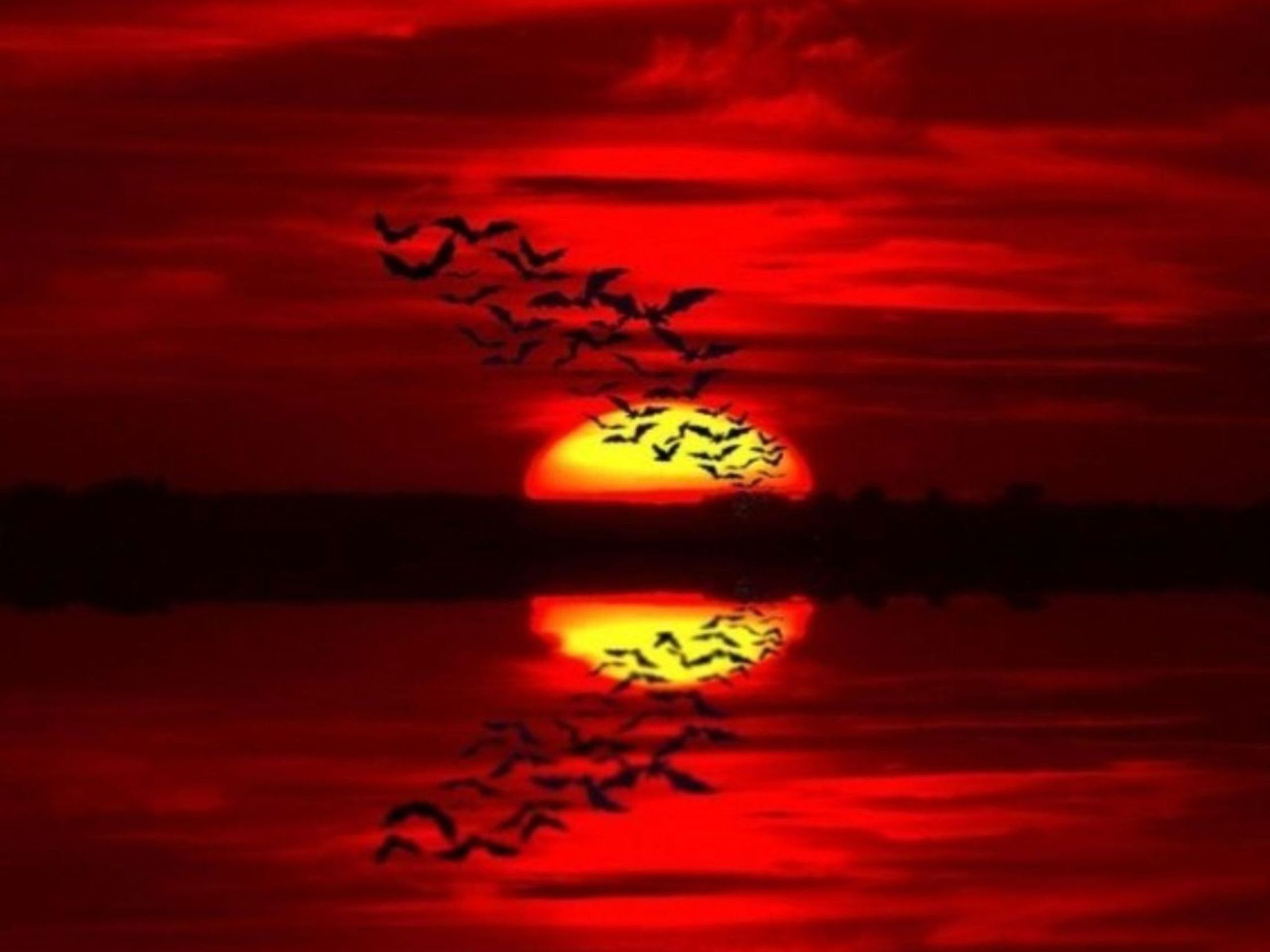 Скачать обои для рабочего стола Кроваво-красный закат и фото