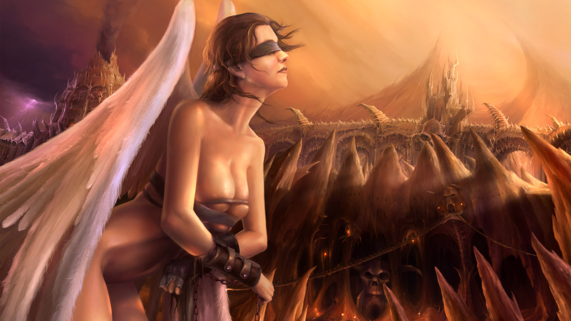 Скачать обои для рабочего стола Крылатая девушка с завязанными глазами и фото