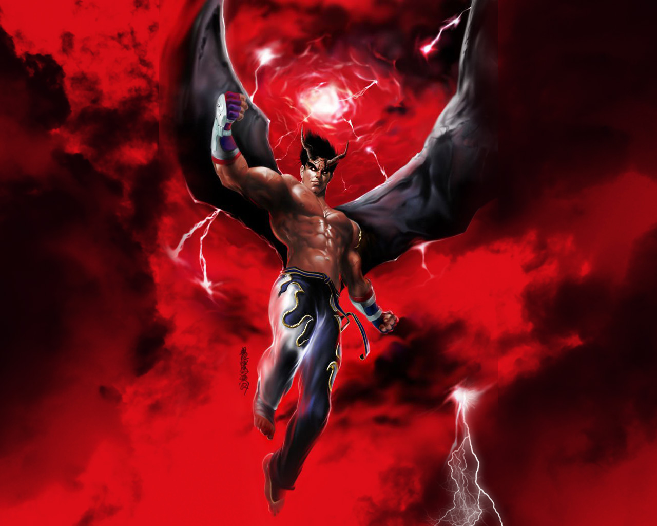 Скачать обои для рабочего стола Крылатый человек на красном небе и фото