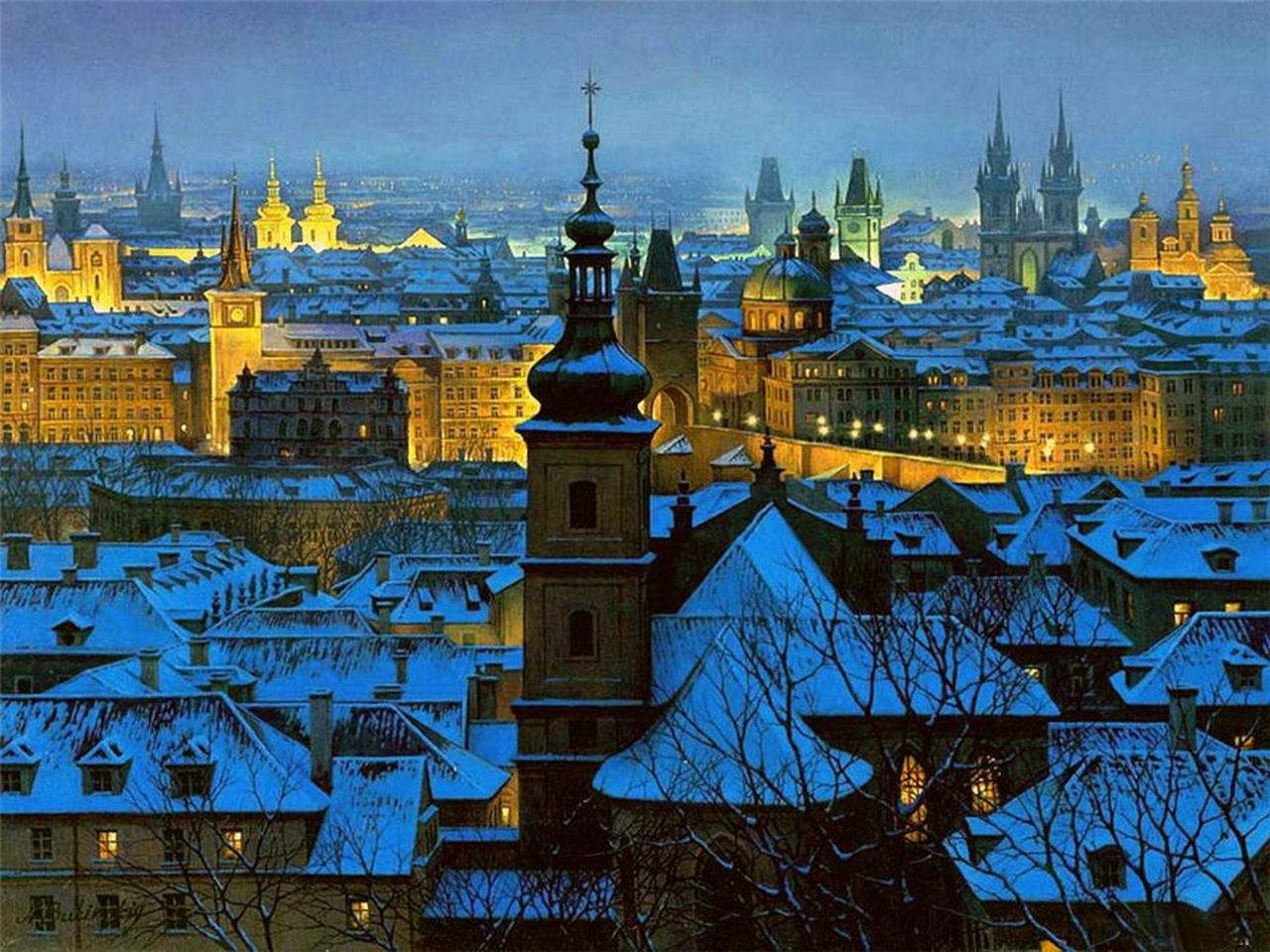 Похожие обои на Крыши ночного города: