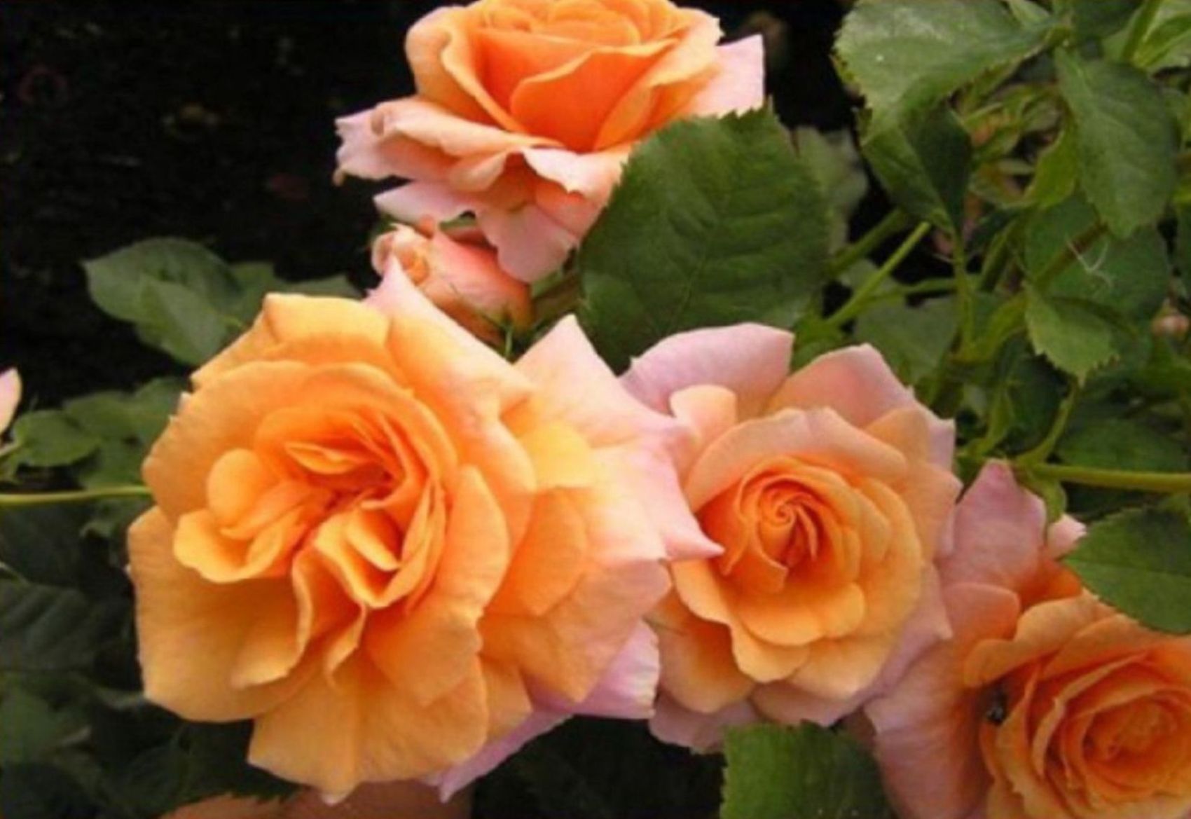 Скачать обои для рабочего стола Куст оранжево-кремовых роз и фото