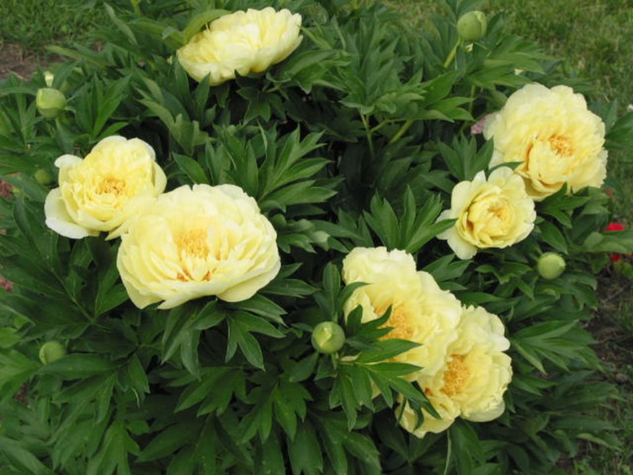 Скачать обои для рабочего стола Куст жёлтых пионов и фото