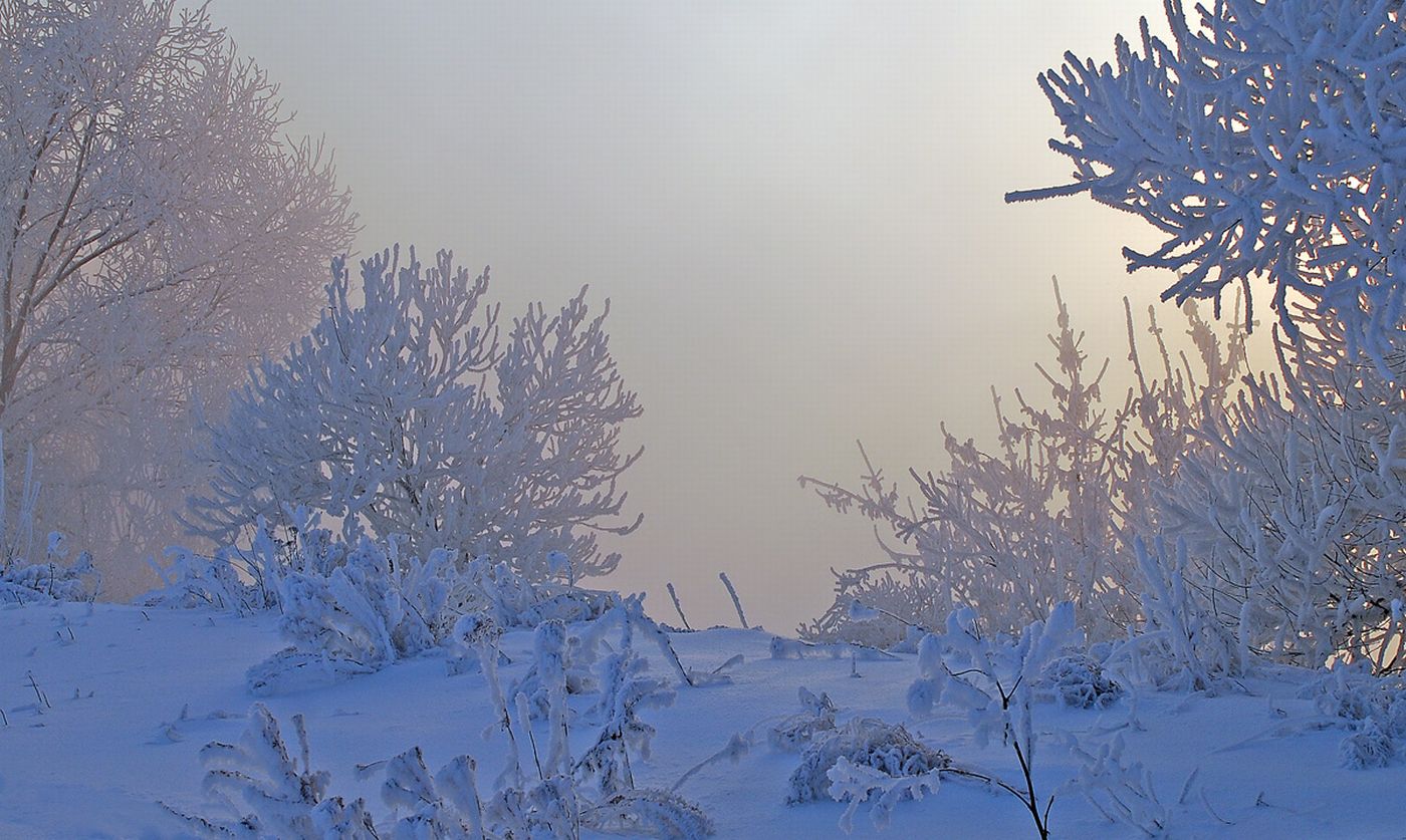 Похожие обои на Кусты покрылись инеем: