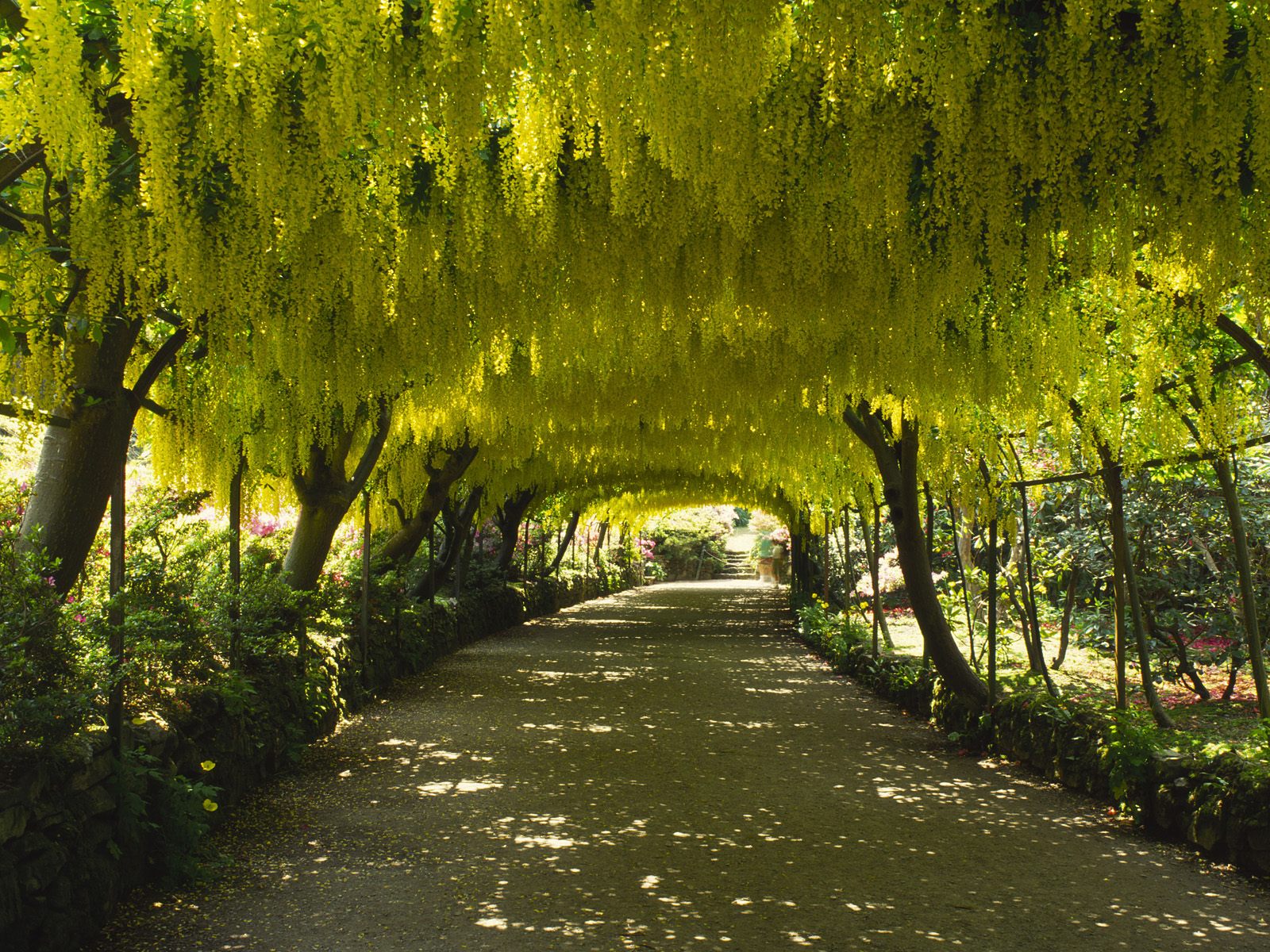 Скачать обои для рабочего стола Laburnum Arch, Bodnant Garden, Gwynedd, Wales и фото