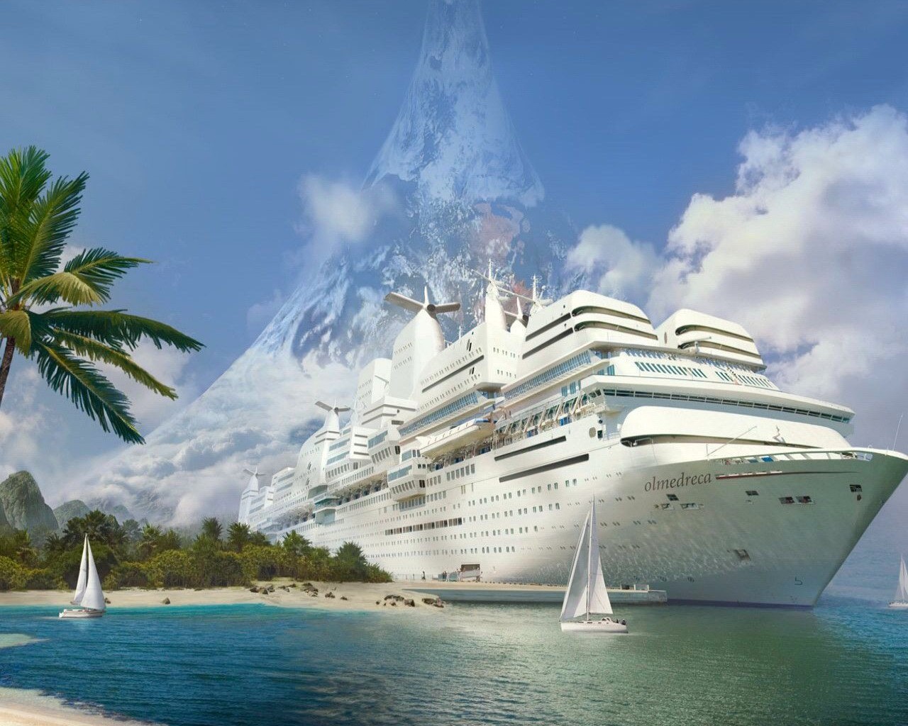 Обои Лайнер и парусники