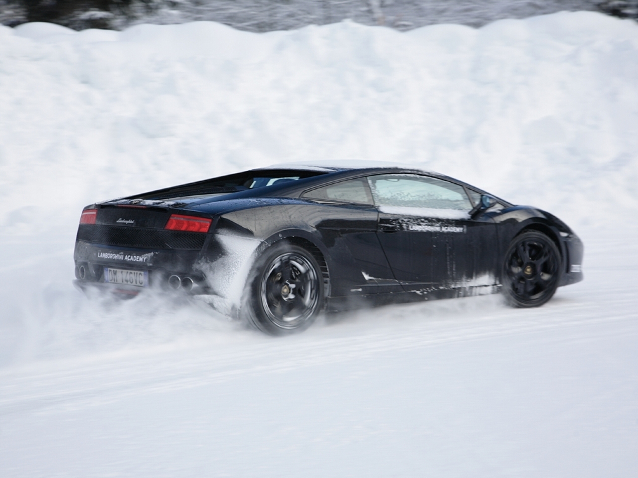 Скачать обои для рабочего стола Lamborghini зимой на снегу и фото