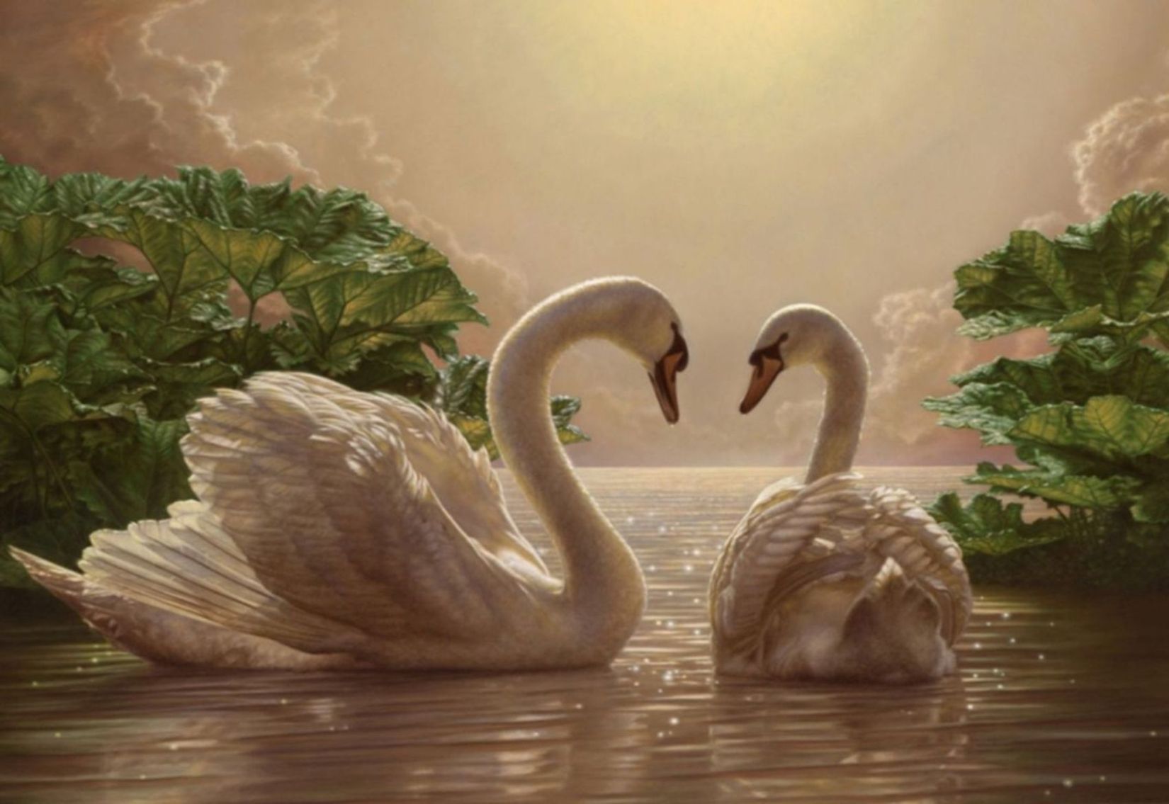 Скачать обои для рабочего стола Лебедь и лебёдушка и фото