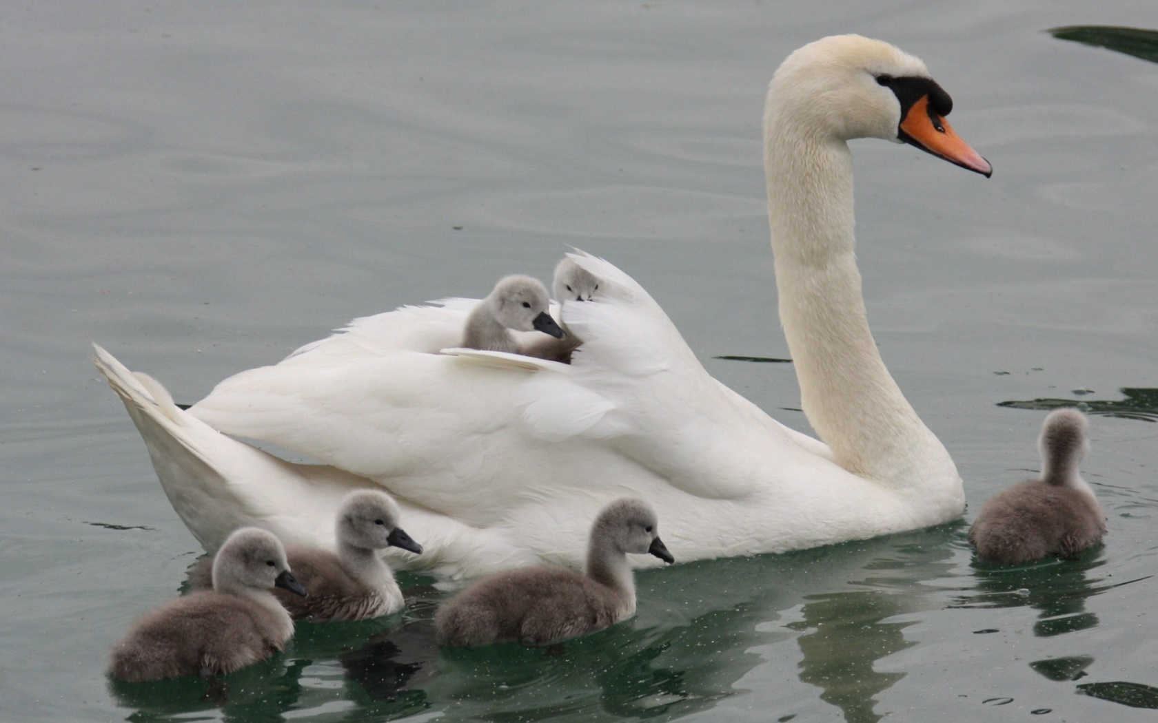 Скачать обои для рабочего стола Лебедь и маленькие лебедята и фото