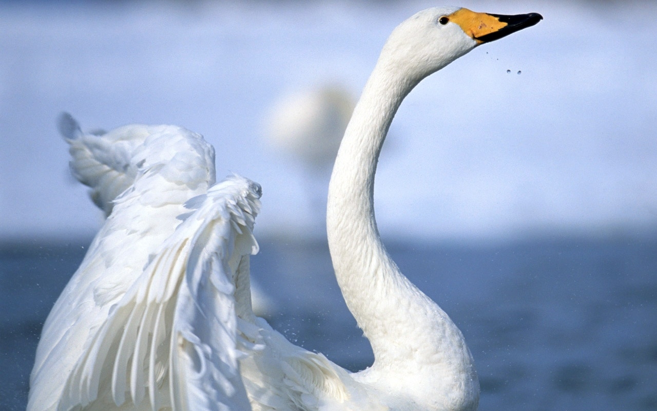 Похожие обои на Лебедь машущий крильями:
