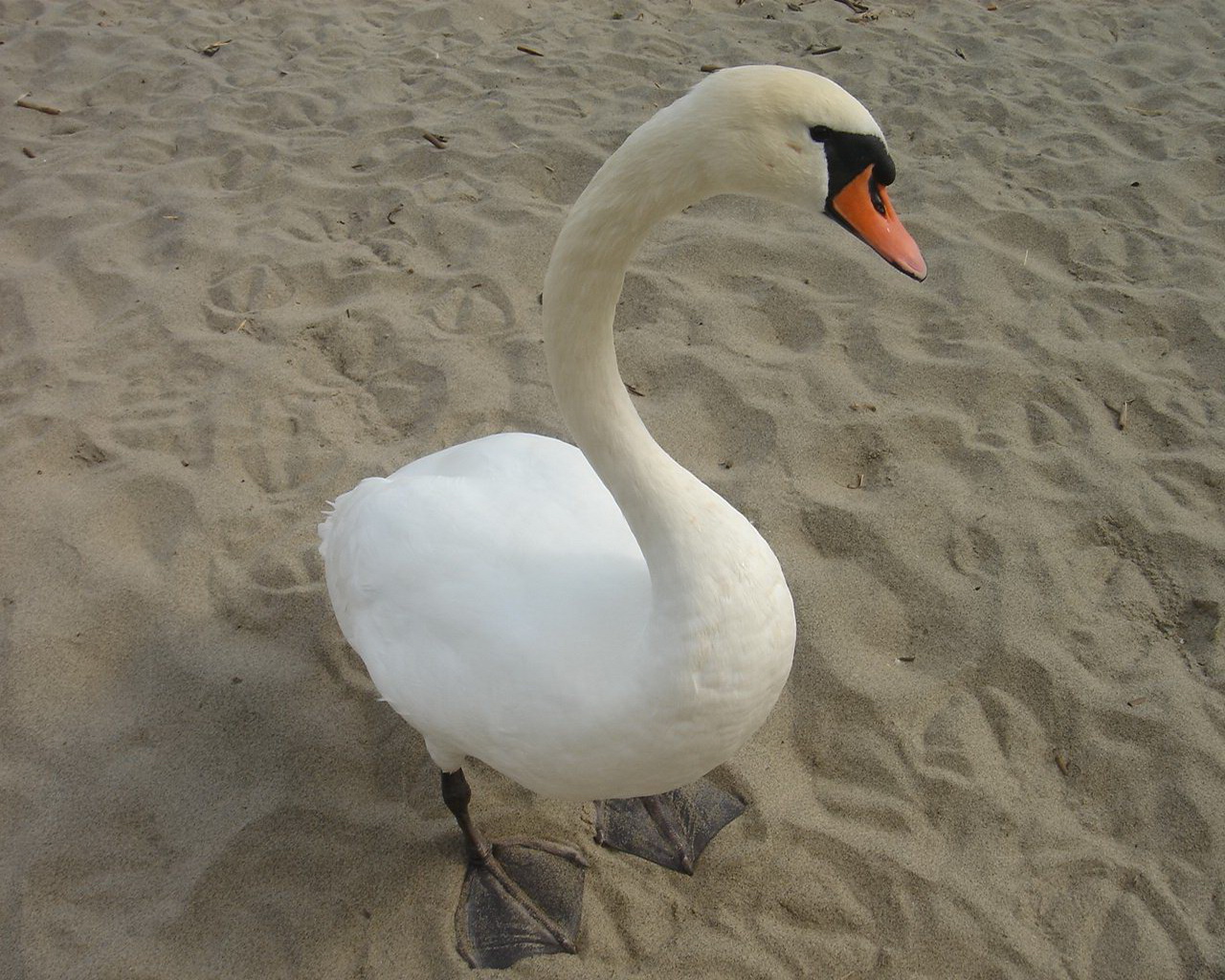 Скачать обои для рабочего стола Лебедь на песке и фото