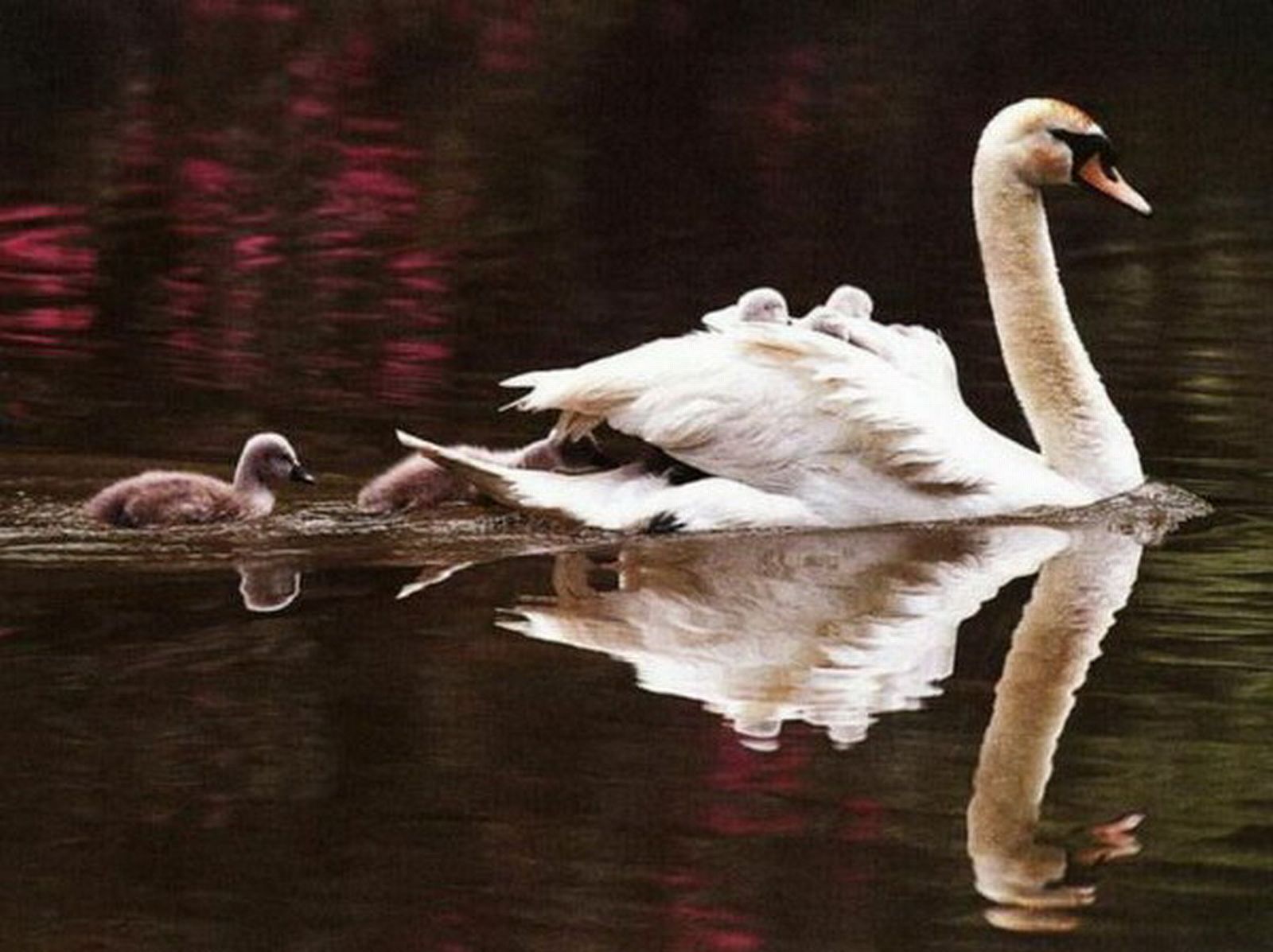 Скачать обои для рабочего стола Лебеди - уроки плаванья и фото