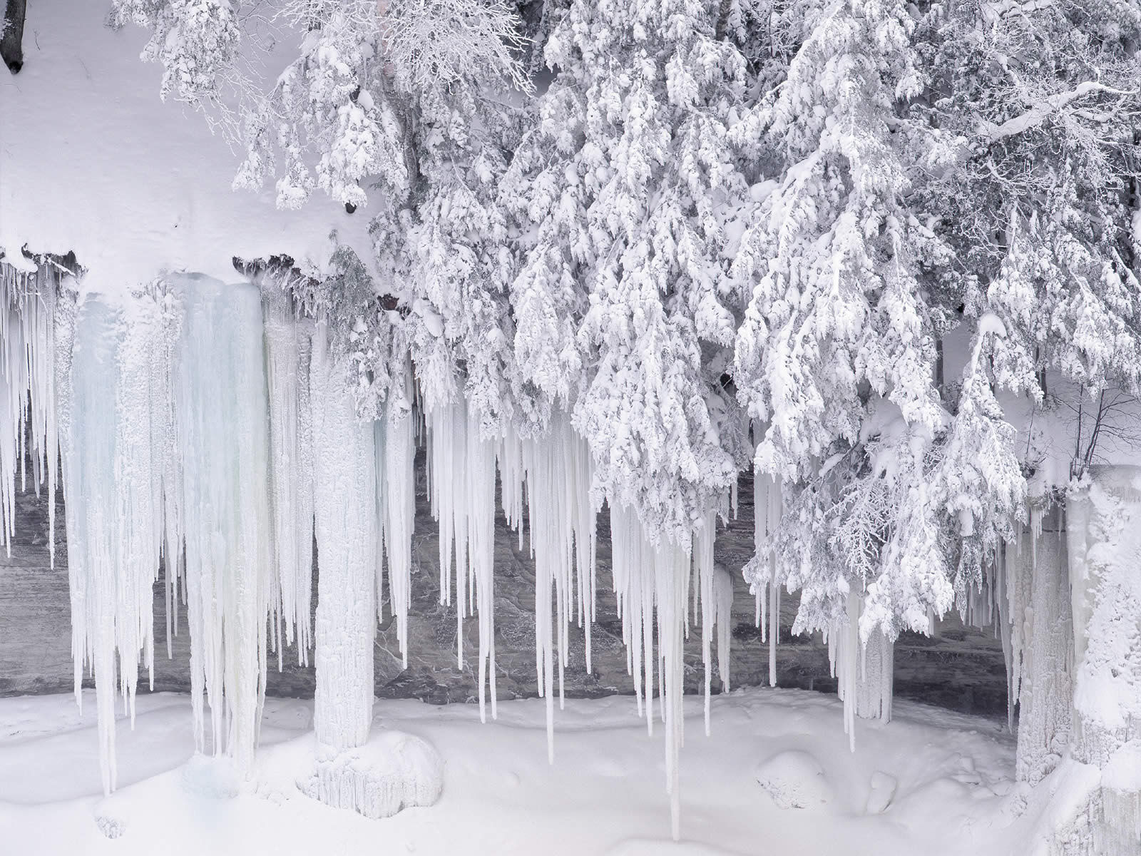 Скачать обои для рабочего стола Ледяные скульптуры и снежное дерево и фото