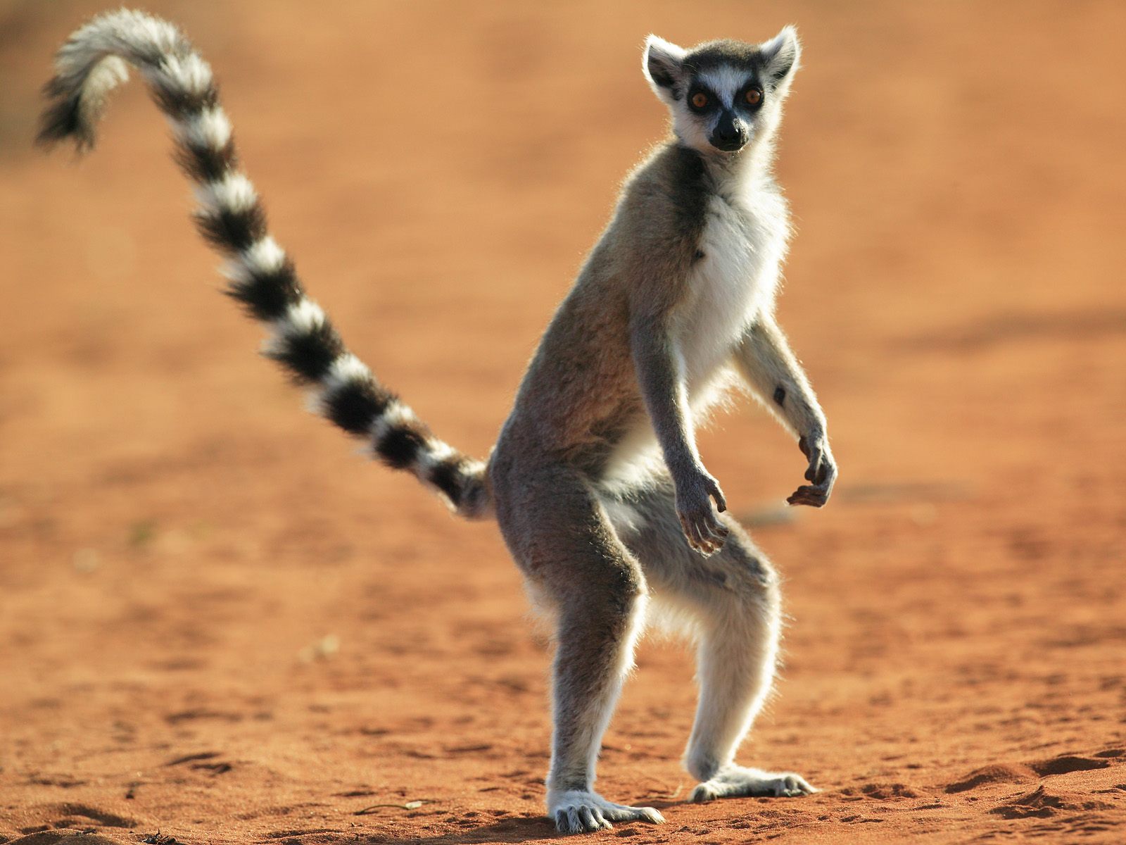 Скачать обои для рабочего стола Лемур застыл перед фотокамерой и фото