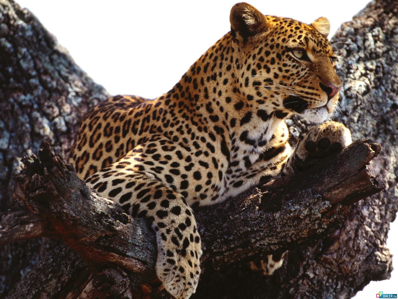 Скачать обои для рабочего стола Леопард лежит на дереве и фото