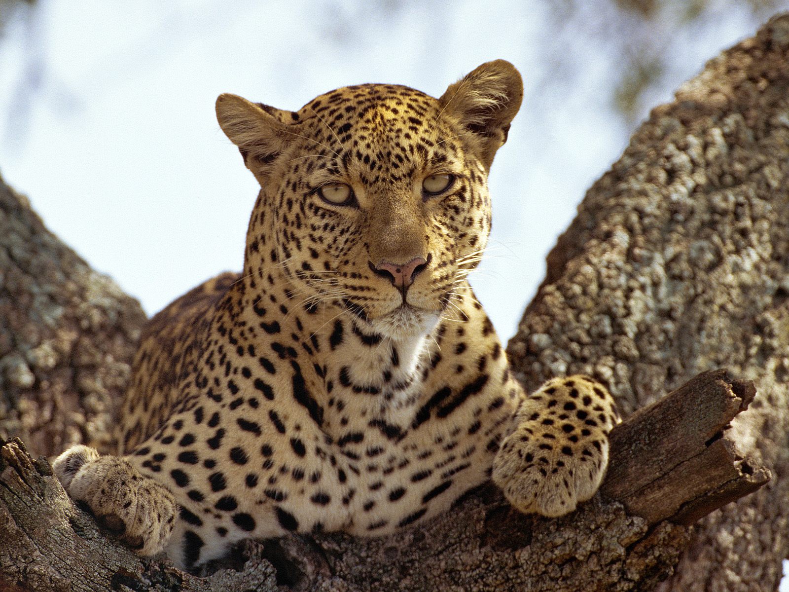 Скачать обои для рабочего стола Леопард на ветке и фото