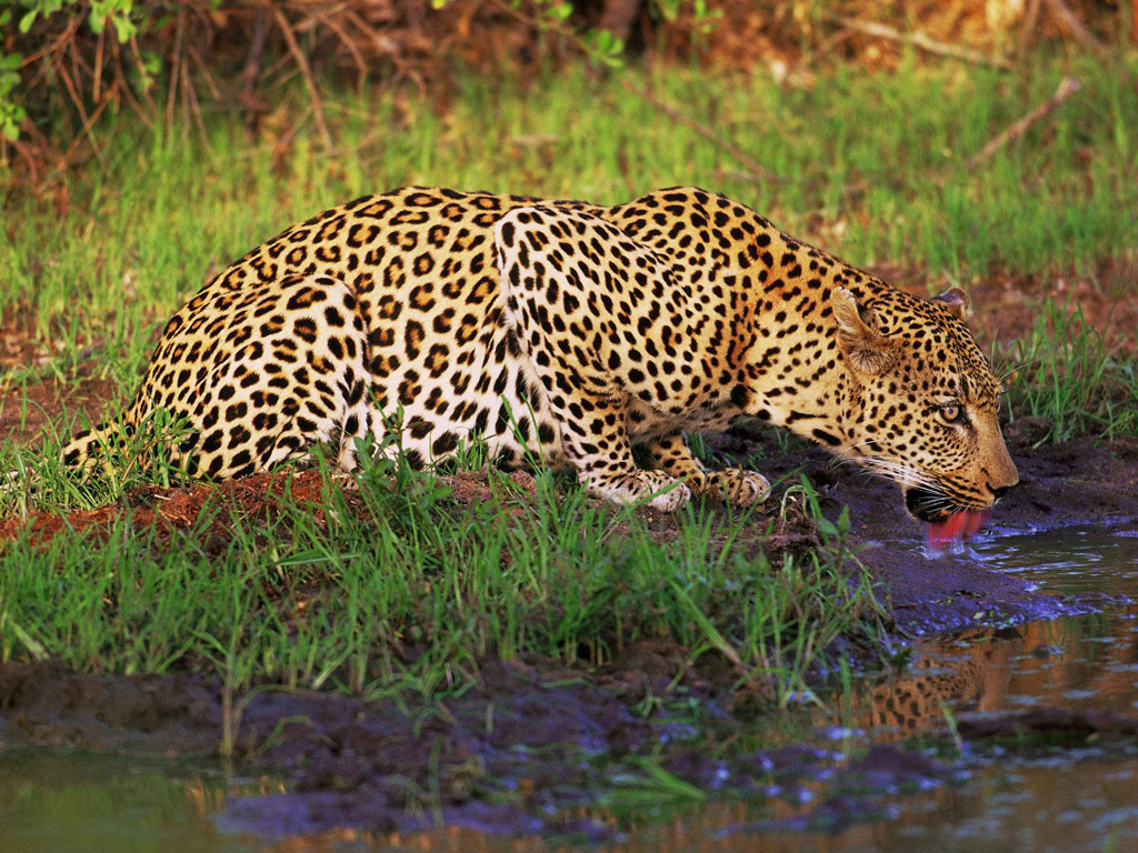 Скачать обои для рабочего стола Леопард на водопое и фото