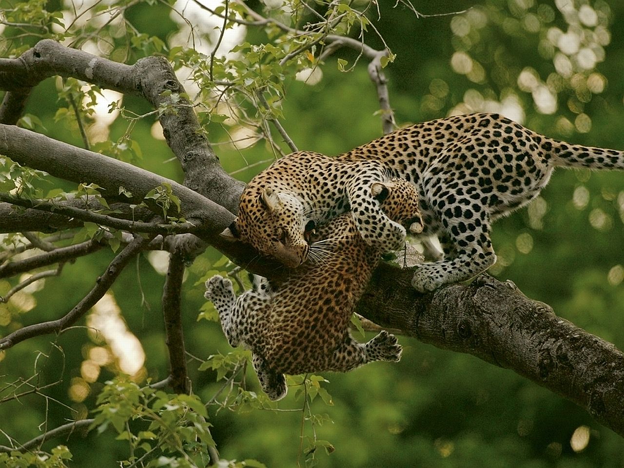 Скачать обои для рабочего стола Леопарды на дереве и фото