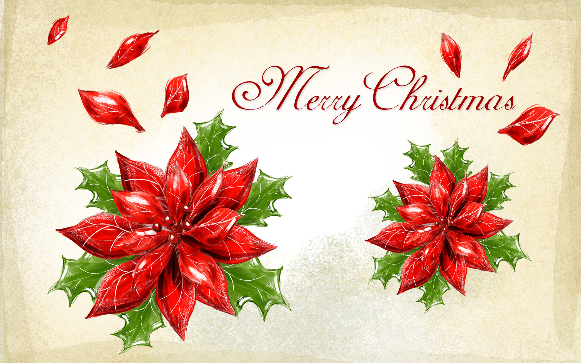 Обои Лепестки красивых блестящих красных цветов с Merry Cristmas