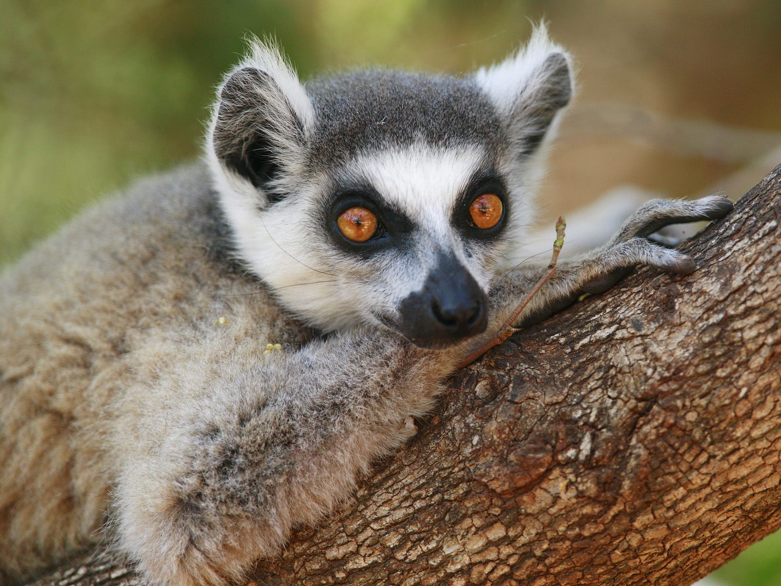 Скачать обои для рабочего стола Лепур лежит на дереве и фото