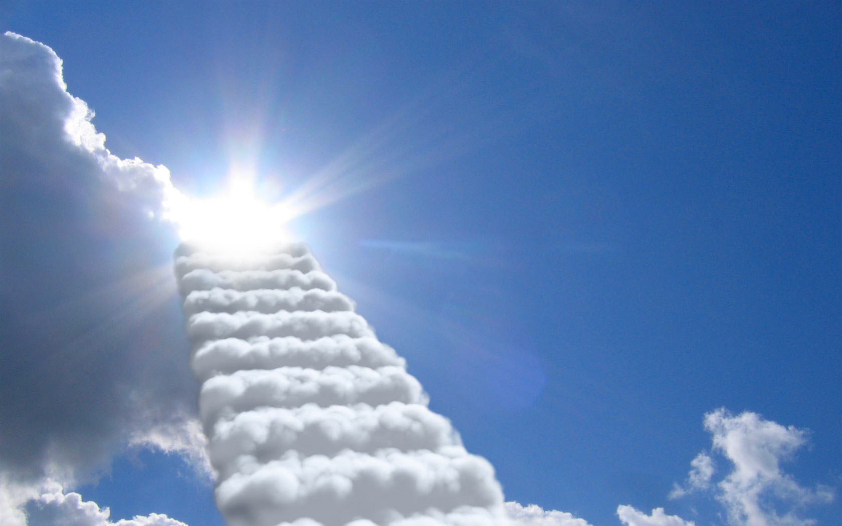 Скачать обои для рабочего стола Лестница из облаков прямо к солнечному свету и фото