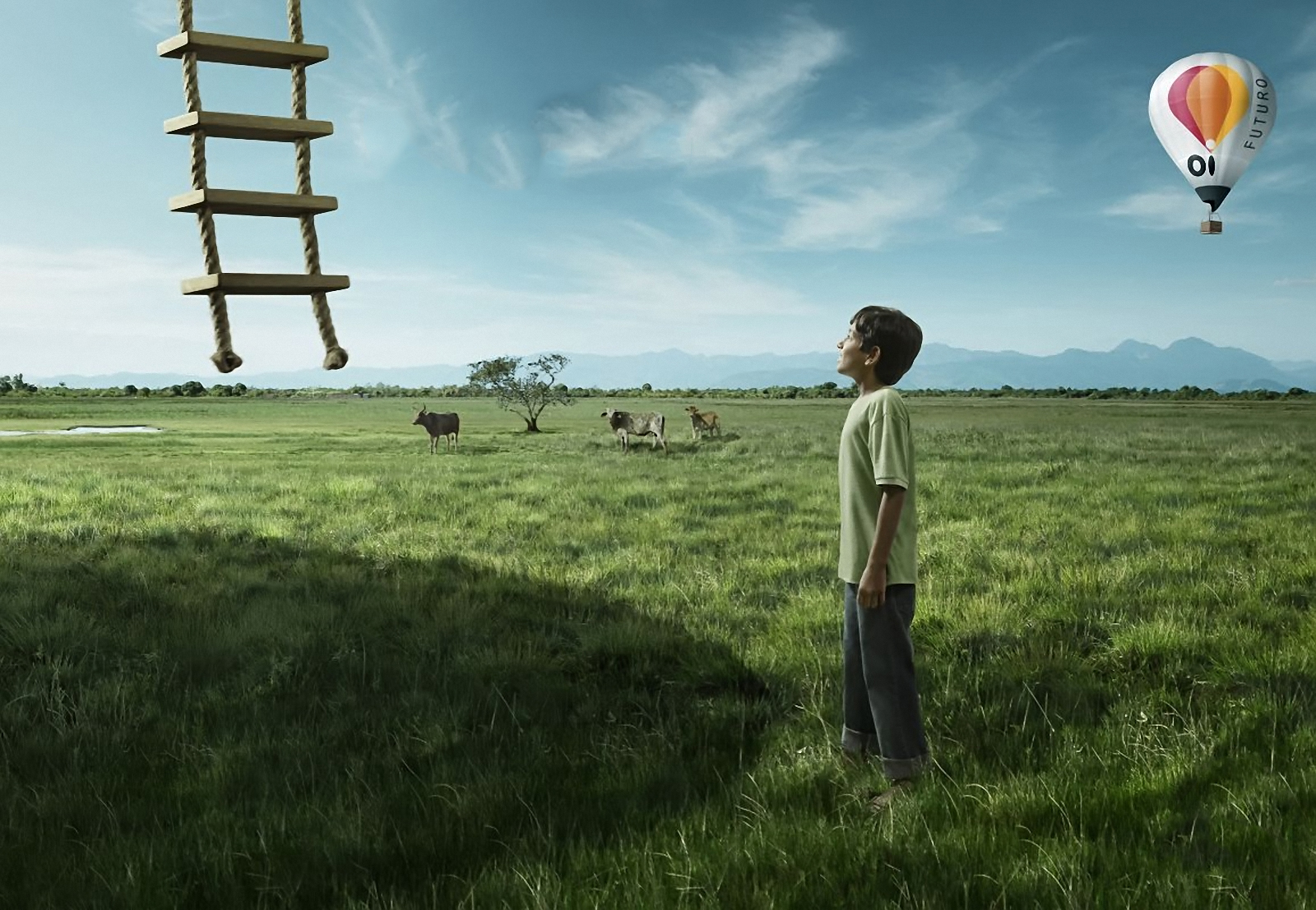 Скачать обои для рабочего стола Лестница на воздушный шар и фото