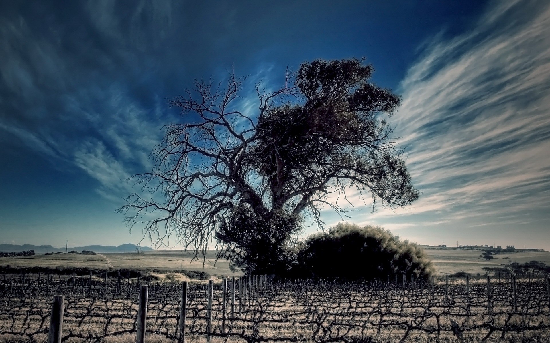 Скачать обои для рабочего стола Летнее деревo с сухой веткой, у виноградника и фото