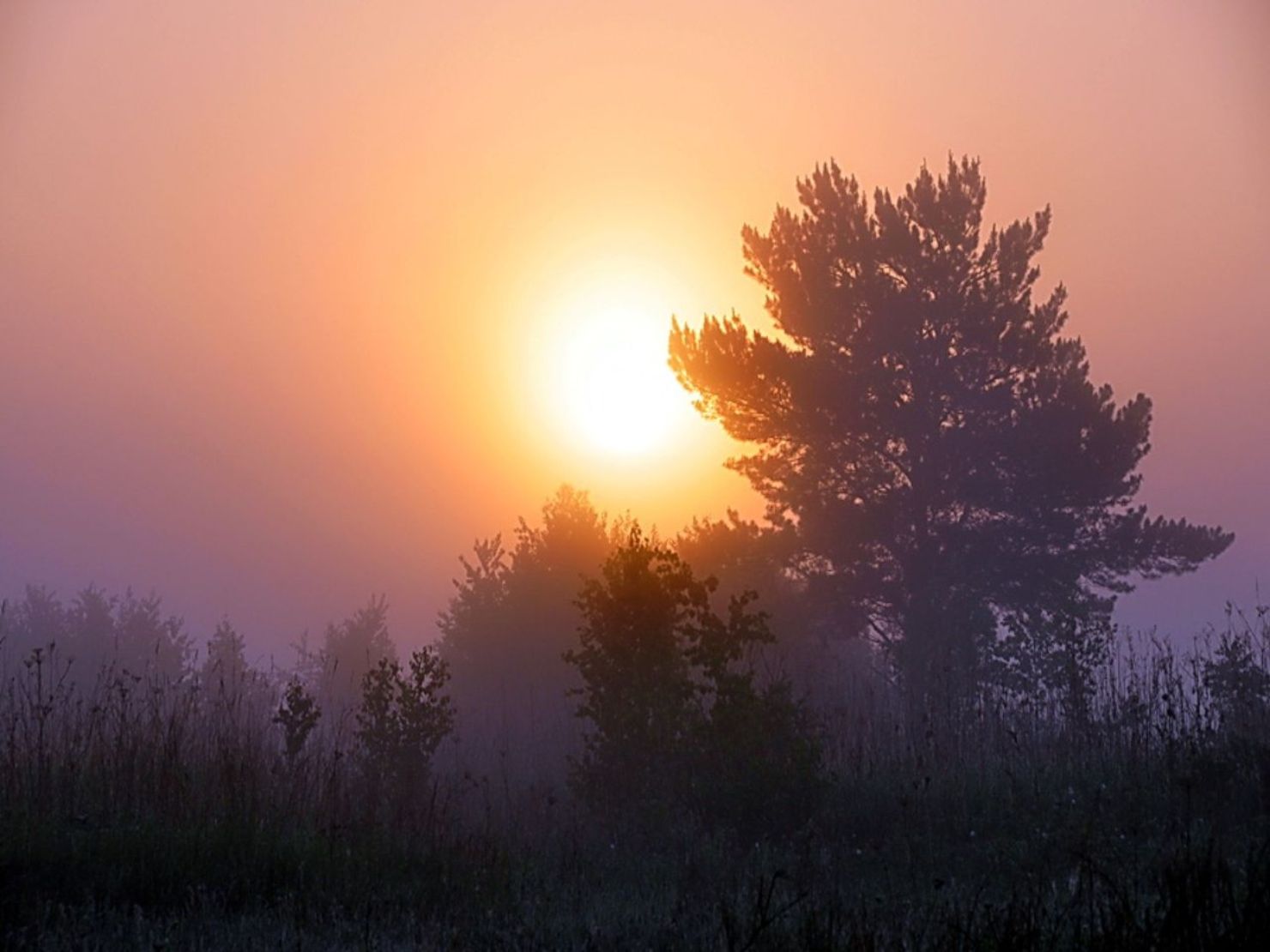 Скачать обои для рабочего стола Летние деревья в тумане и фото