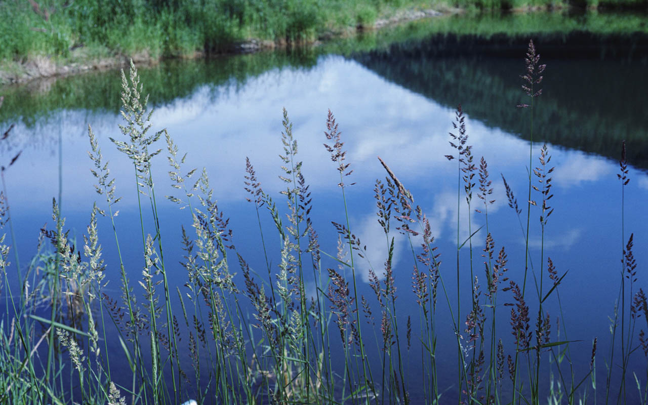 Скачать обои для рабочего стола Летние травы у реки и фото