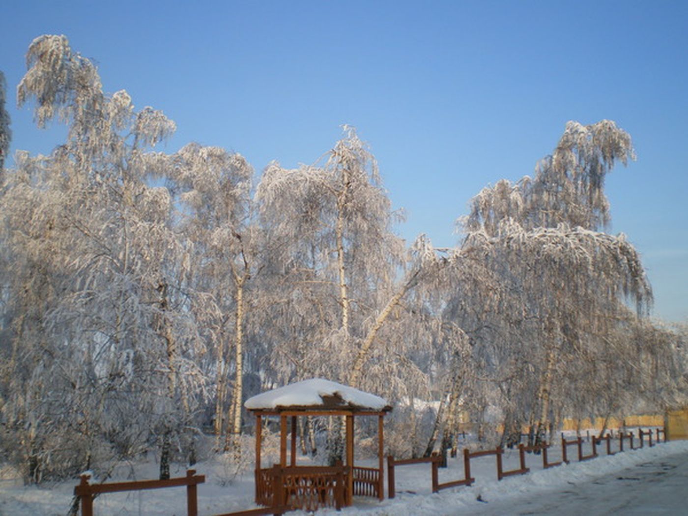 Скачать обои для рабочего стола Летняя беседка в снегу и фото