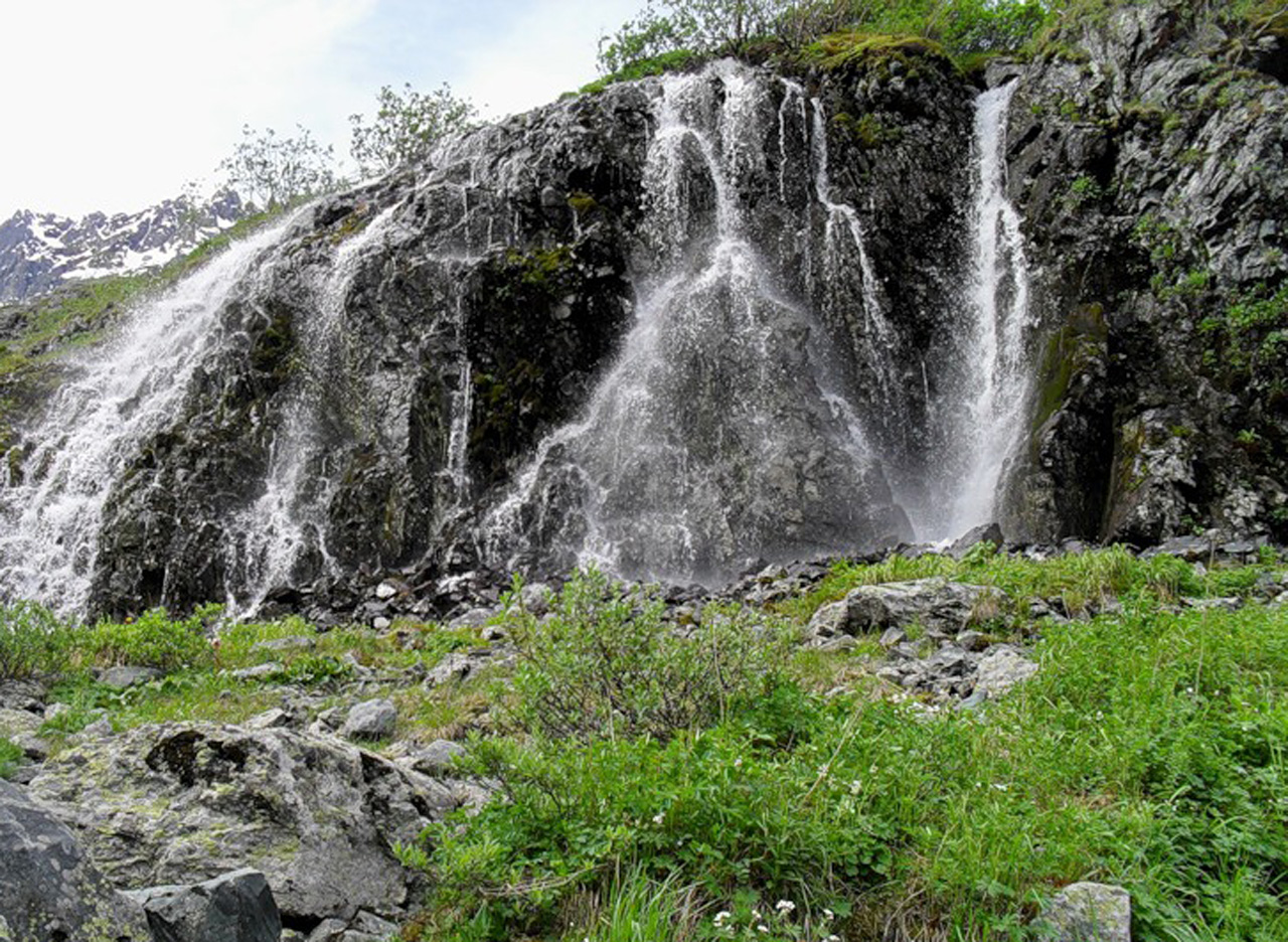 Похожие обои на Летняя лужайка и водопад:
