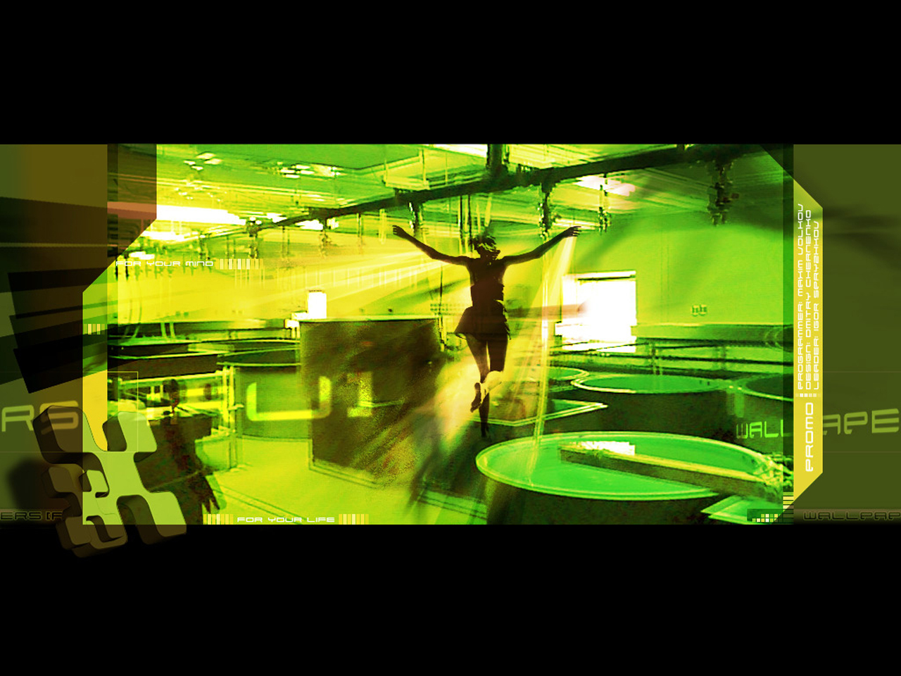 Скачать обои для рабочего стола Летящая девушка в зелёной, астральной матрице и фото