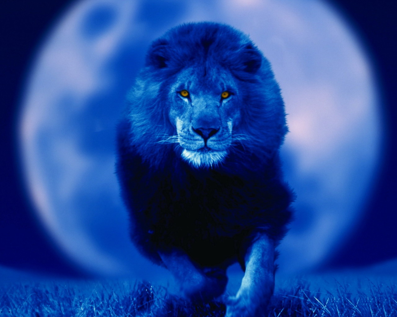 Скачать обои для рабочего стола Лев на фоне луны и фото