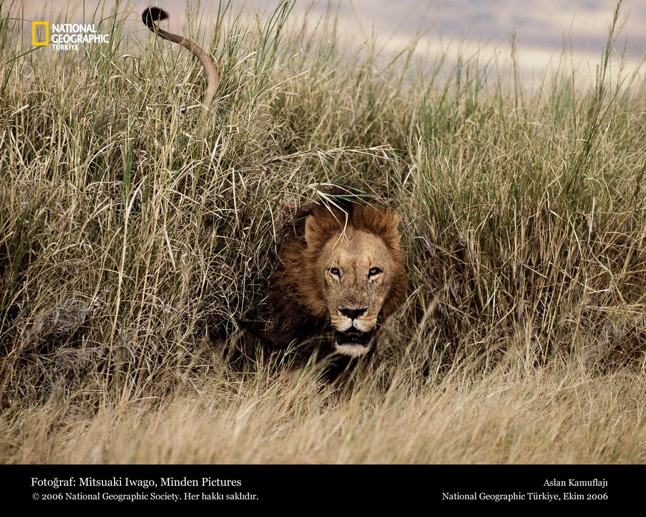 Скачать обои для рабочего стола Лев в засаде и фото