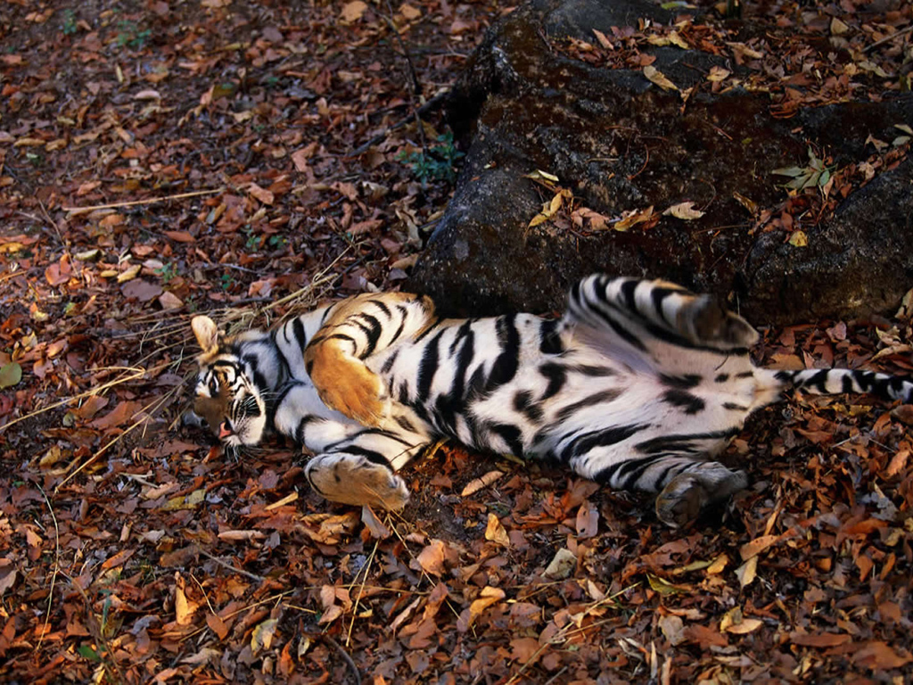 Скачать обои для рабочего стола Лежащий тигр и фото