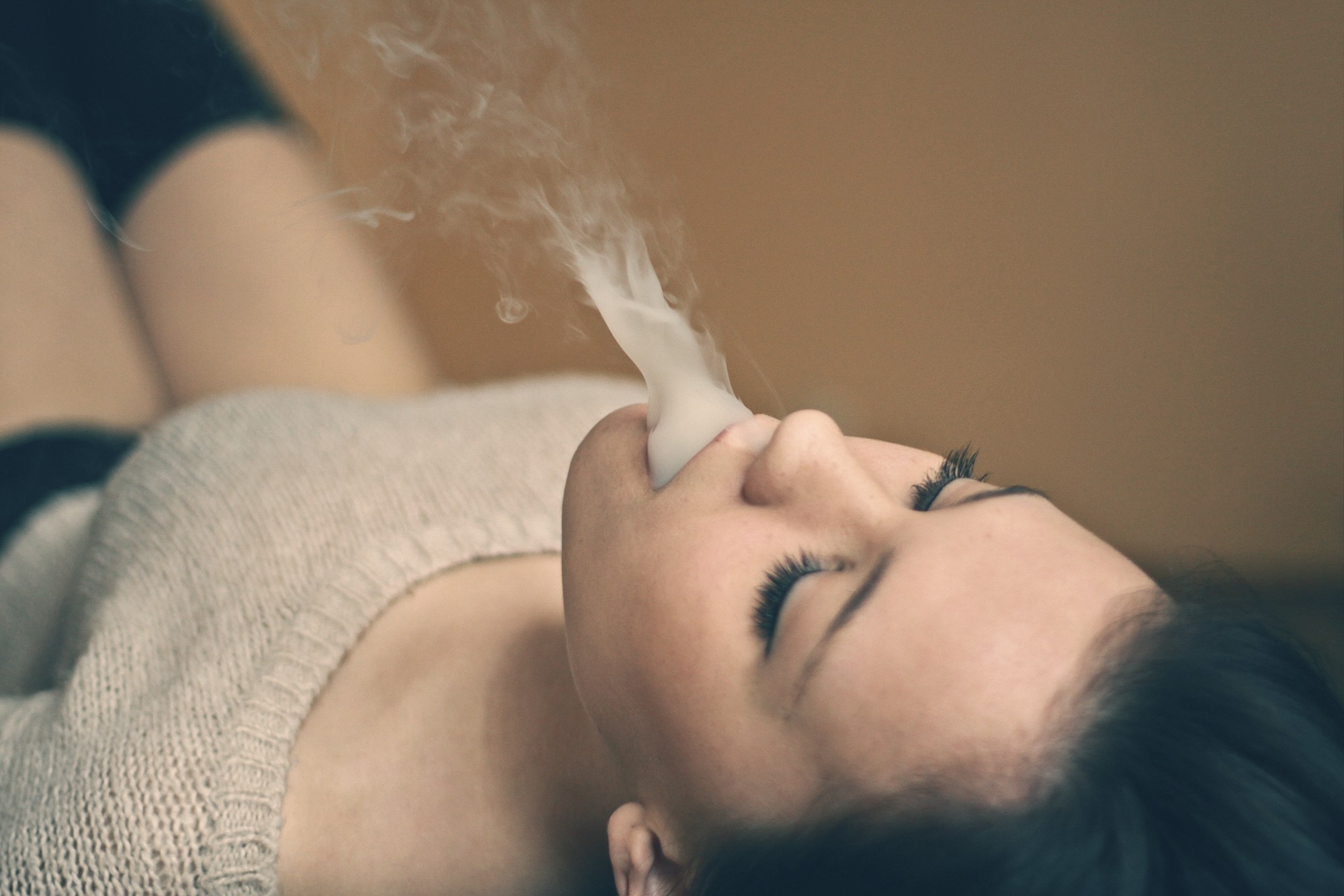 Скачать обои для рабочего стола Лежит и выпускает дым со рта и фото