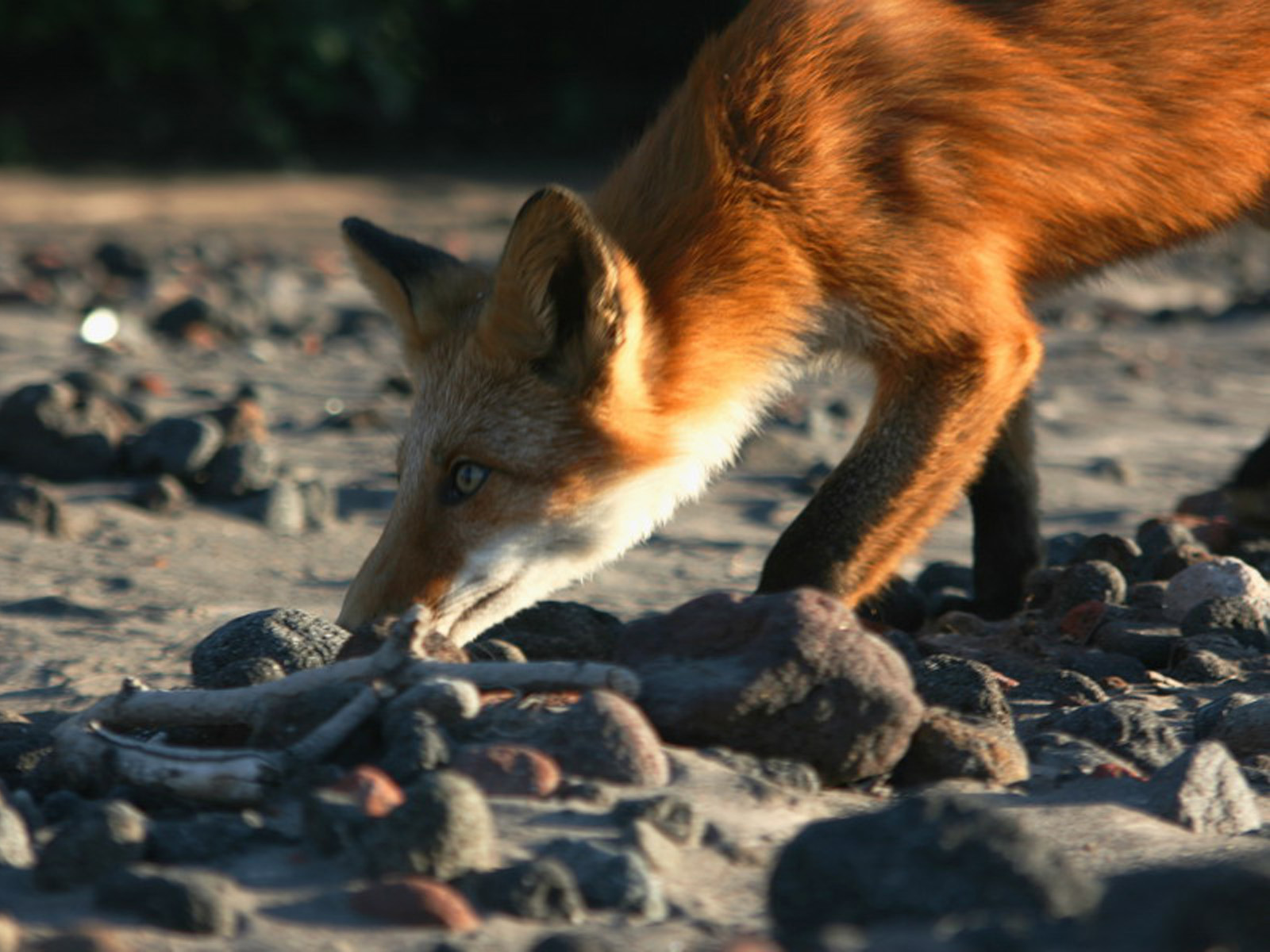 Скачать обои для рабочего стола Лиса в поисках еды и фото