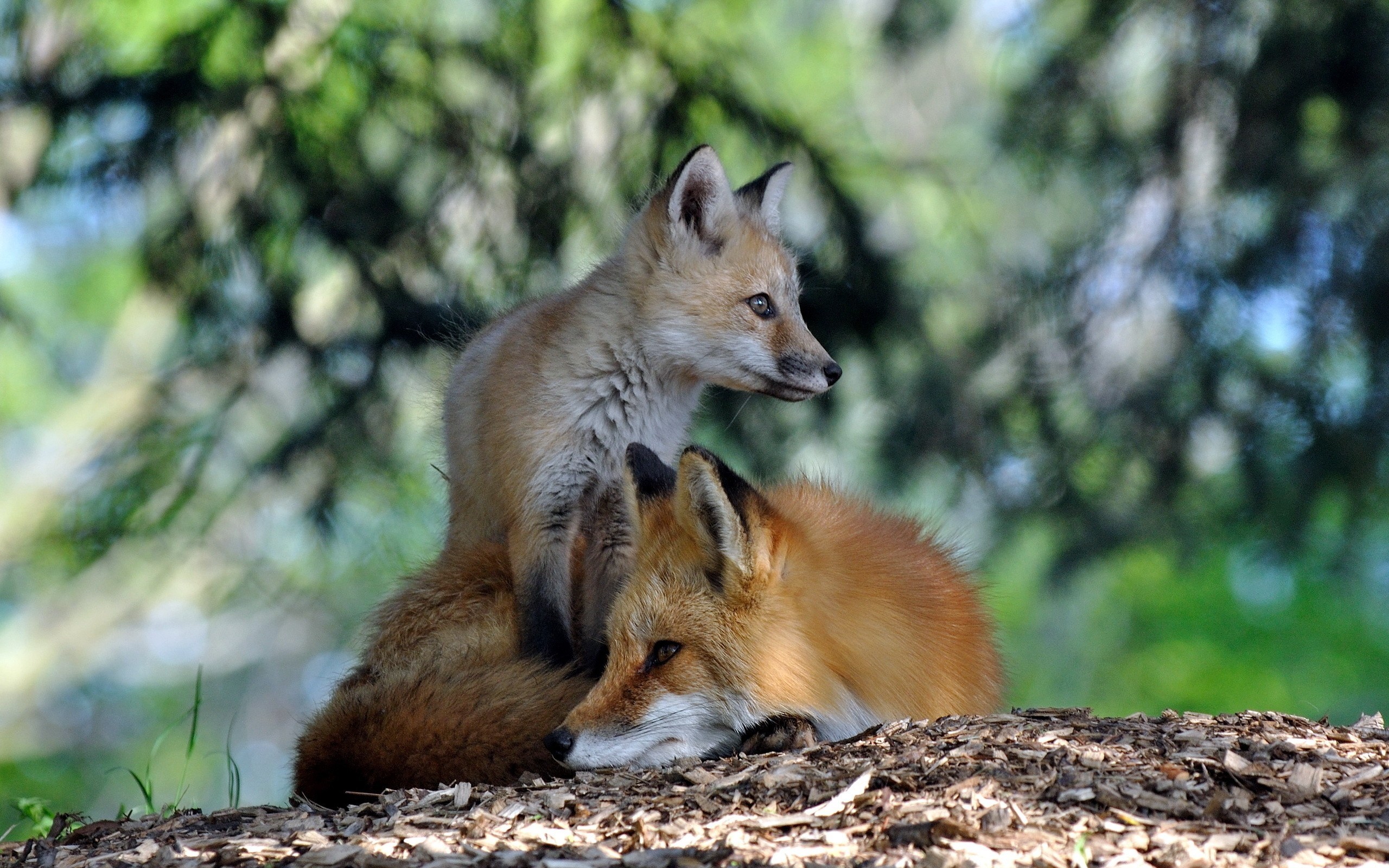 Скачать обои для рабочего стола Лисенок с мамашей и фото