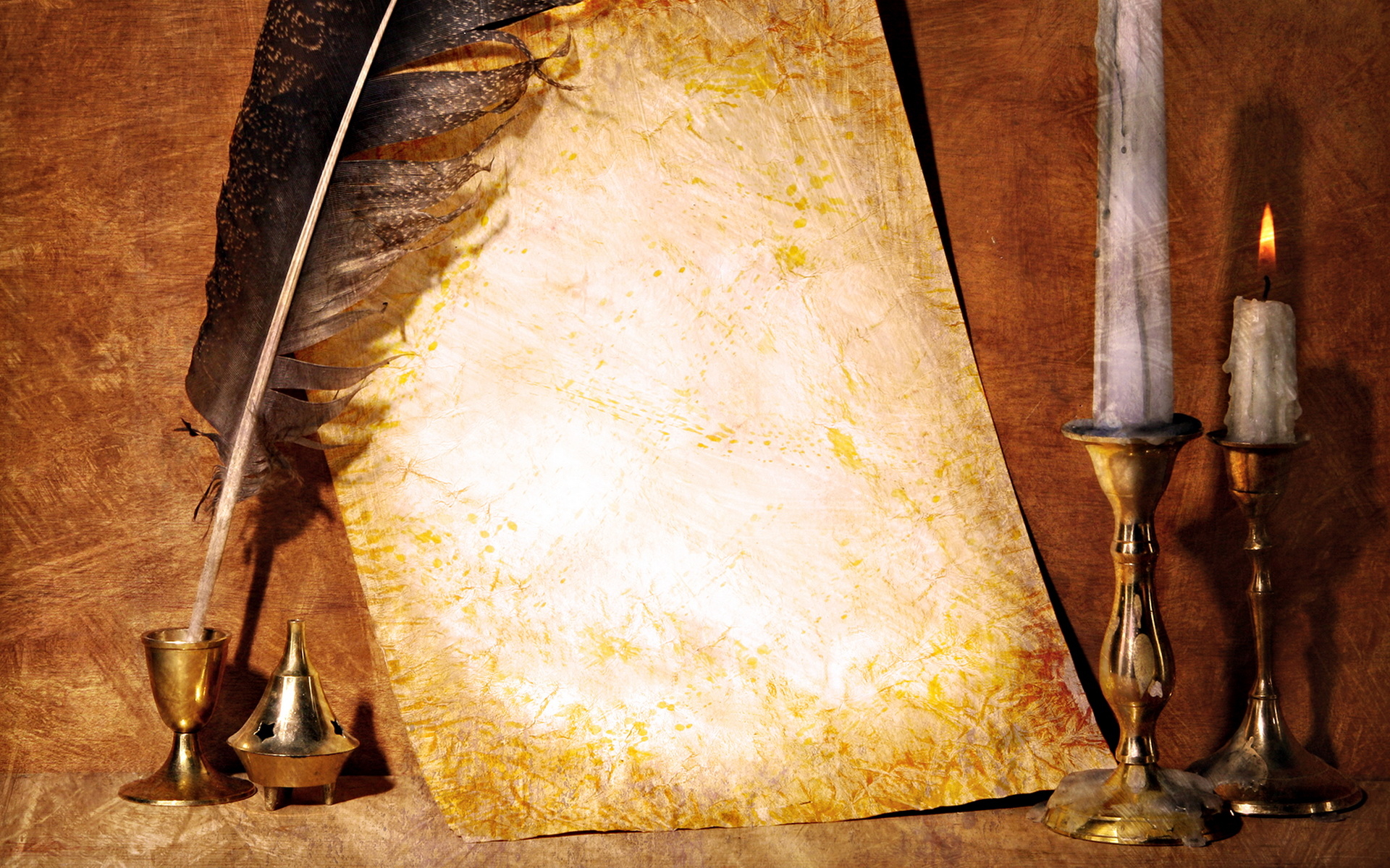 Скачать обои для рабочего стола Лист, бумага, перо, свечи и фото