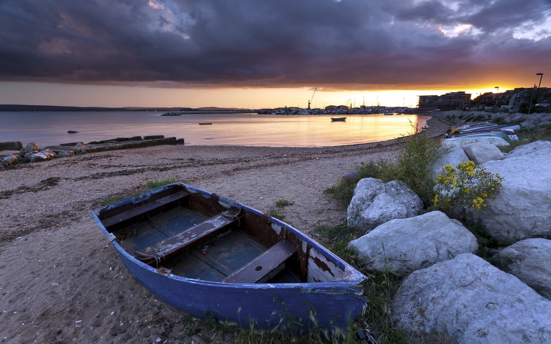 Скачать обои для рабочего стола Лодка у камнeй на побеpежьи и фото