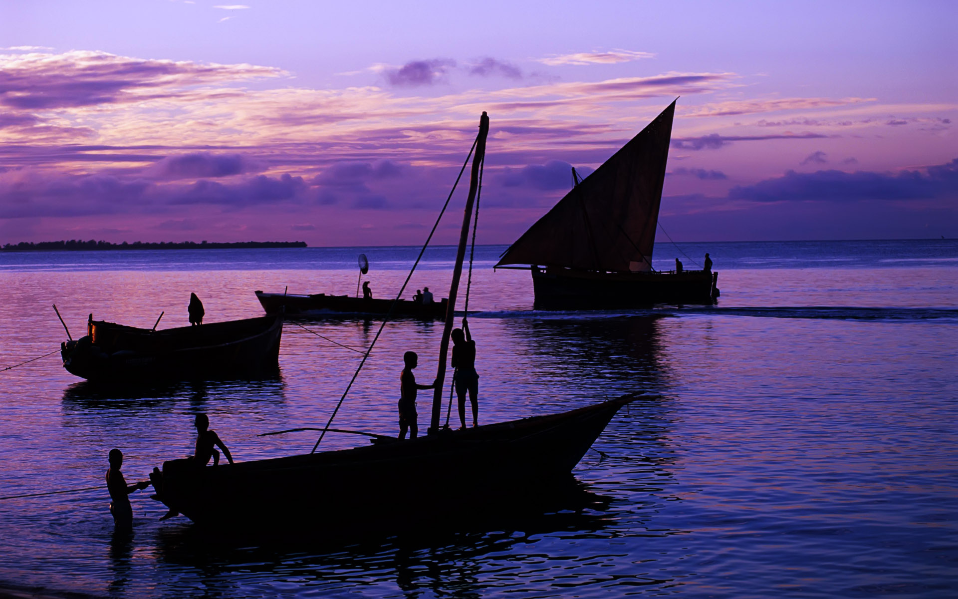 Скачать обои для рабочего стола Лодки в фиолетовых сумерках и фото