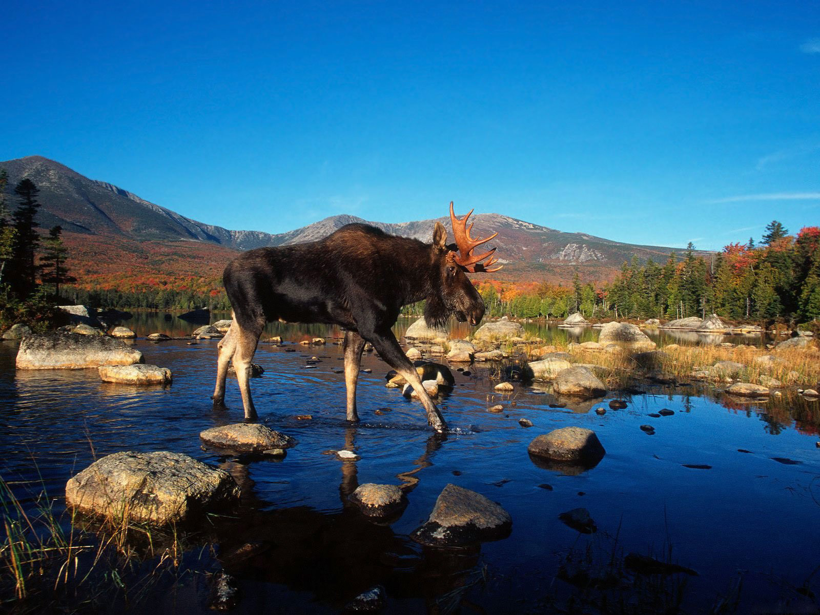 Скачать обои для рабочего стола Лось на водопое и фото
