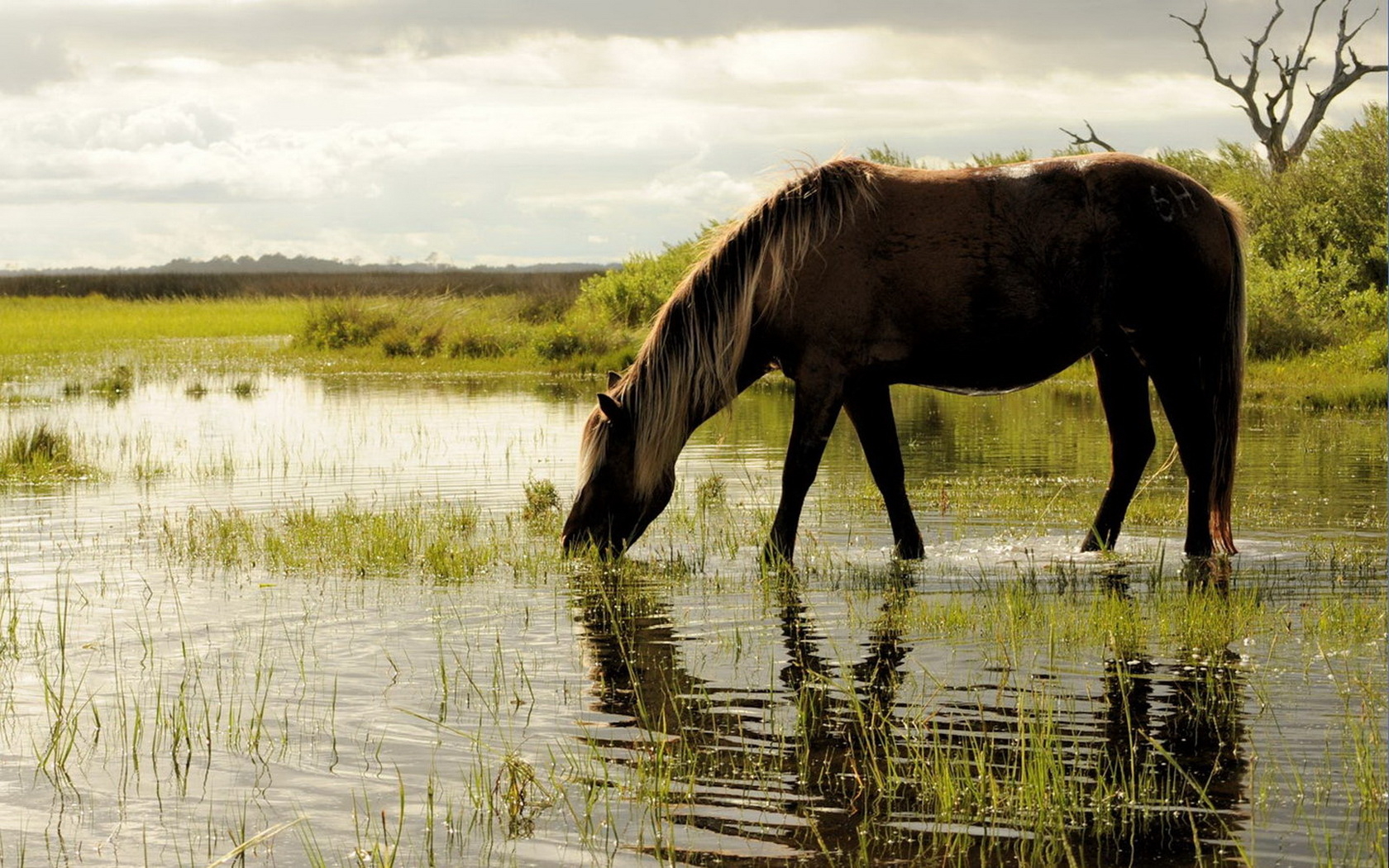 Скачать обои для рабочего стола Лошадь на водопое и фото